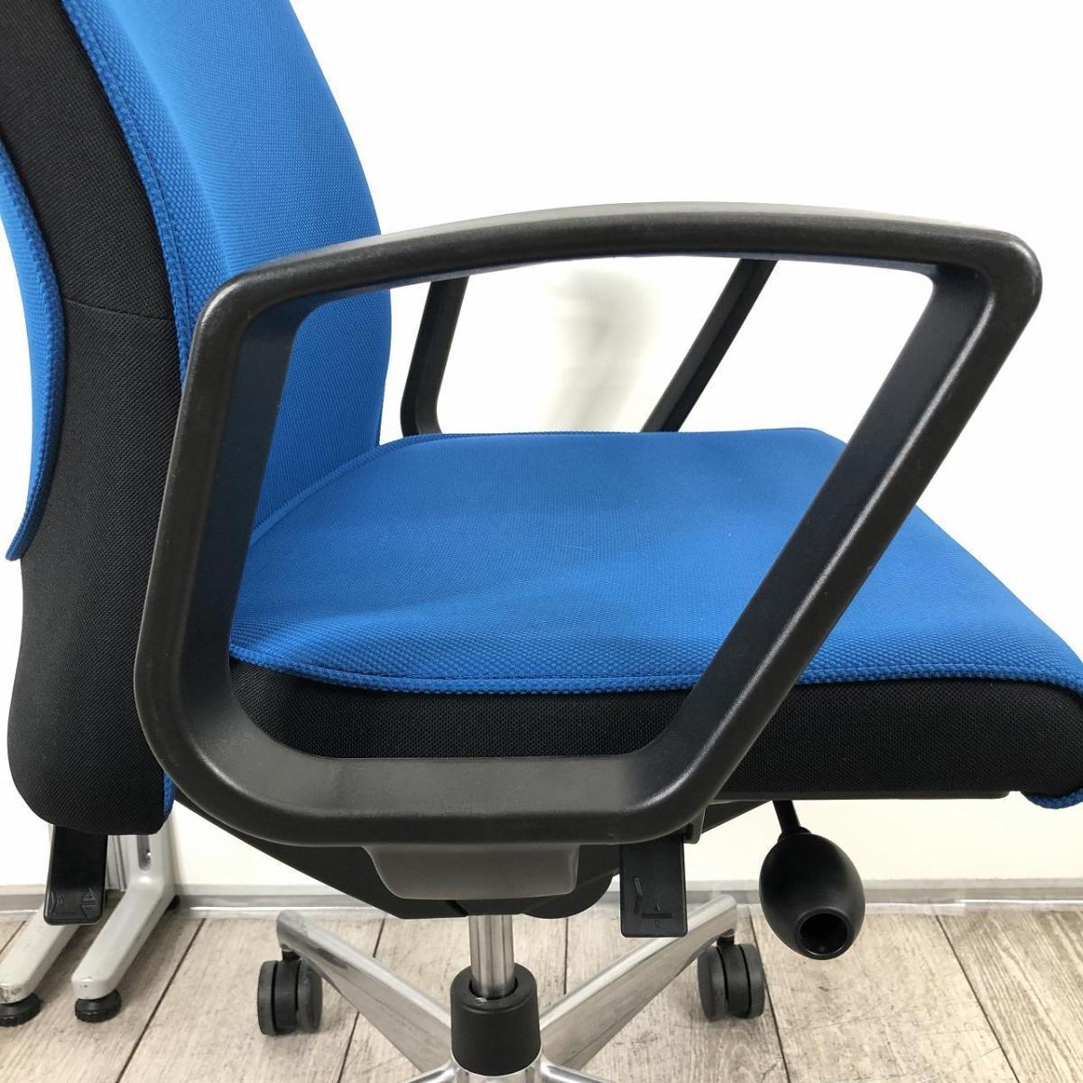 厚めのクッション生地とエアランバーサポート搭載による高品質な座り心地でデスクワークをサポート!サークル肘 ■コクヨ/プントチェア(PUNTO)/ブルー 固定肘付き ハンガー付きサーキュラーバリューCO2削減量の算出について