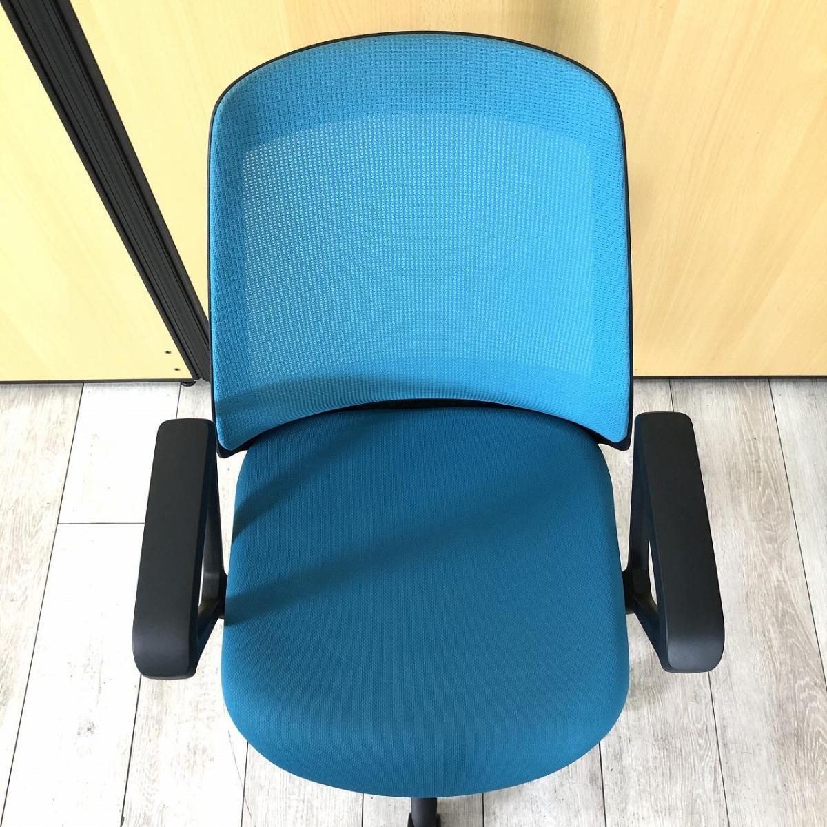【在庫セール品・1脚限定】【T11】■イトーキ(ITOKI)製 ノナ(nona)チェア 肘付ハイバックチェア ■背面メッシュ ■可動肘 ■ブルーグリーン ×ホワイトシェル【理想的な作業姿勢をキープ!コンパクトで使い勝手抜群!】