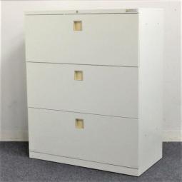 【使いやすさで選ぶならコレ!大容量の三段キャビネット】■オカムラ(Okamura)製 レクトラインシリーズ(Rectline) 3段ラテラル書庫 ローキャビネット ■天板付き ■シリンダー錠【IB】