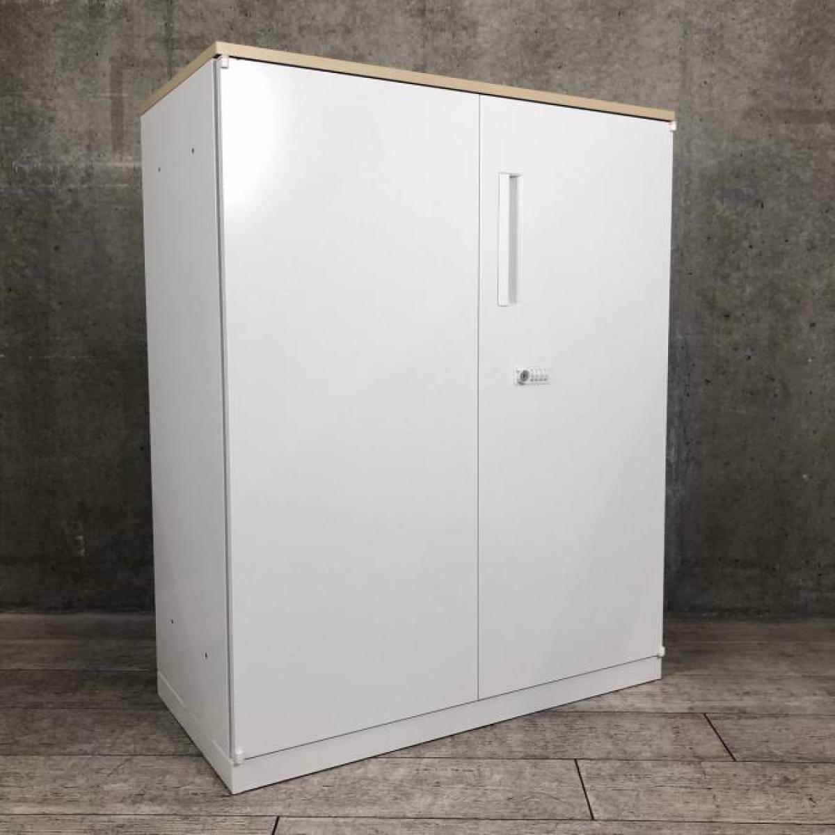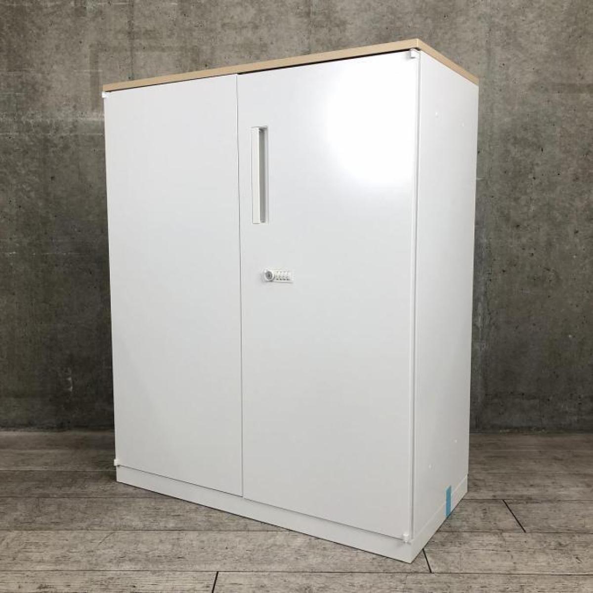 【在庫入替セール品!】人気の観音開きタイプ!取っ手が大きく使い勝手のよい定番キャビネット! ■内田洋行/HSシリーズ/ホワイト 天板ナチュラル