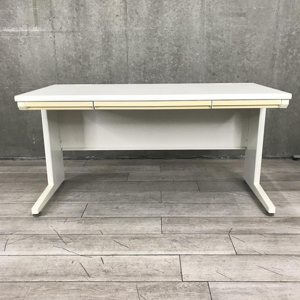 【引き出し日焼け有】 W1400 オカムラ ヴィラージュシリーズ 事務デスク 上長用に オフィスデスク 平机 引き出し付き 中古 オフィス家具 安い 格安