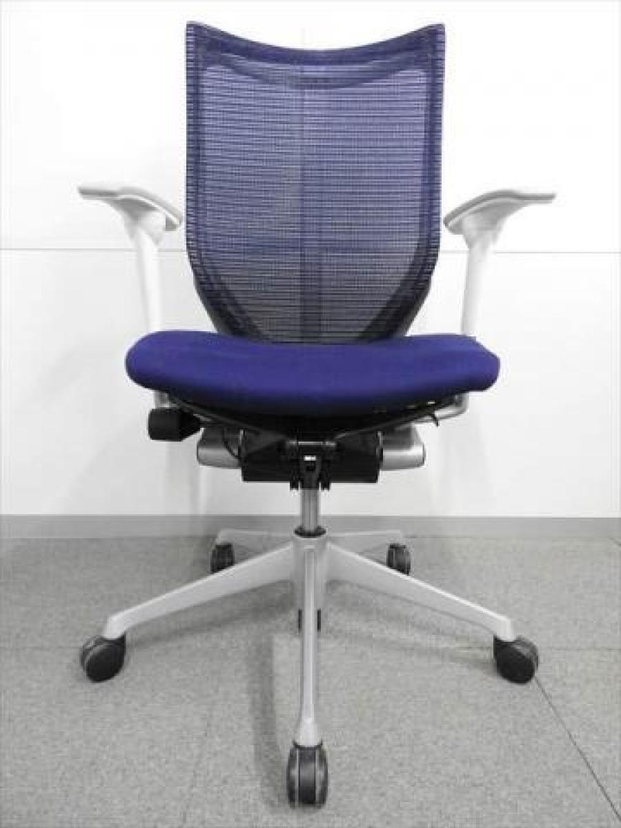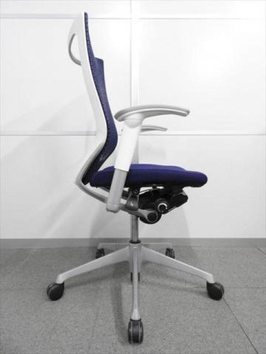 【オフィスの執務室、会議室におすすめ!】■オカムラ(okamura)製 バロン(Baron)チェア 肘付き ハイバック 背面メッシュ ■可動肘 ■ダークブルー × ホワイトシェル【硬めの座面が大人気!国産メッシュチェアの代表格!】