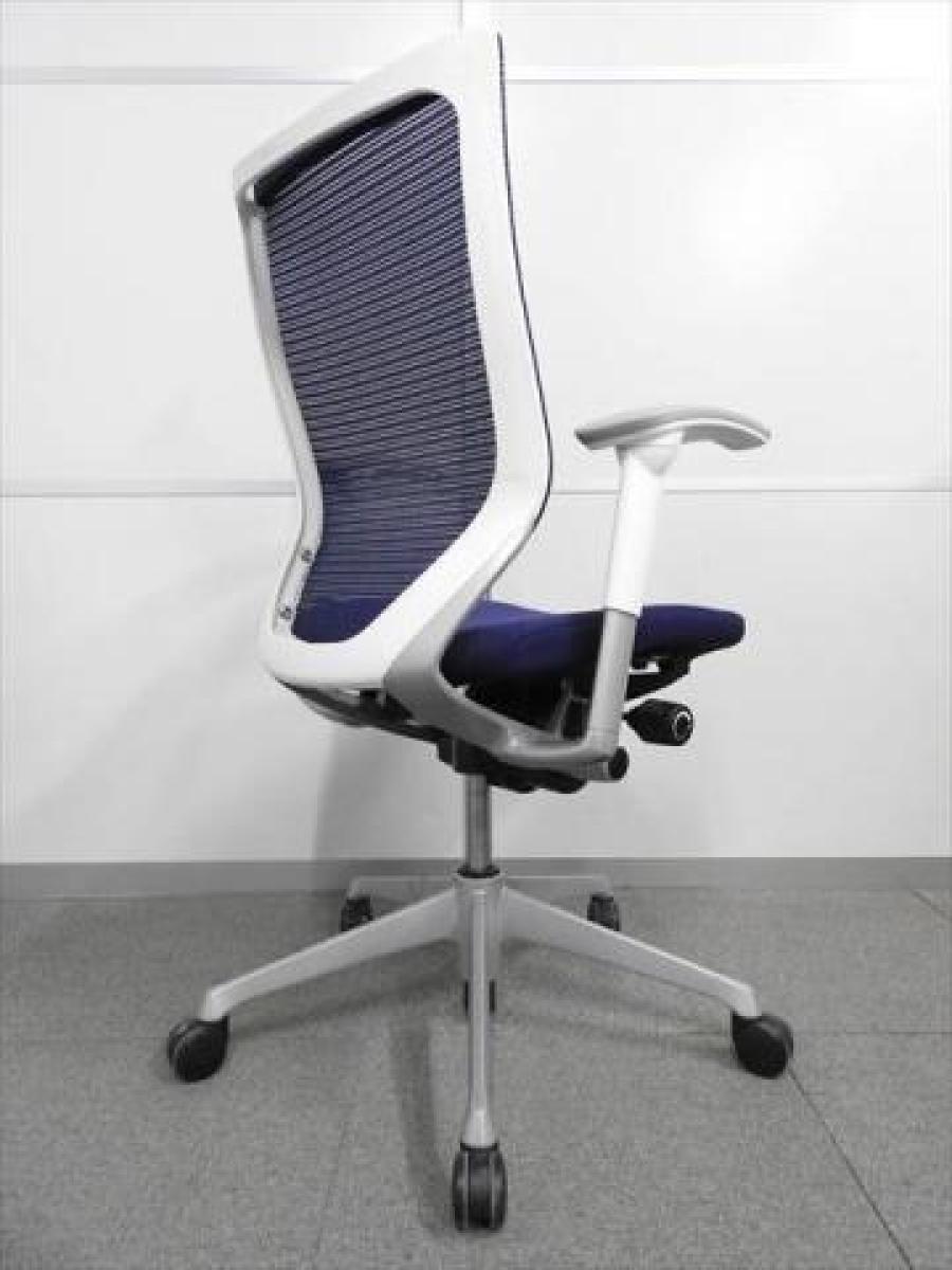 【洗練されたデザインと多彩なバリエーションであらゆるオフィスに調和!自然な姿勢をサポート!】■オカムラ(Okamura) バロンチェア(Baron) 肘付きハイバック ■メッシュ背面 ■可動肘 ■ホワイトフレーム ■ブルー【状態良好品!】【入替セールにつき30%OFF!】/030- つくば店