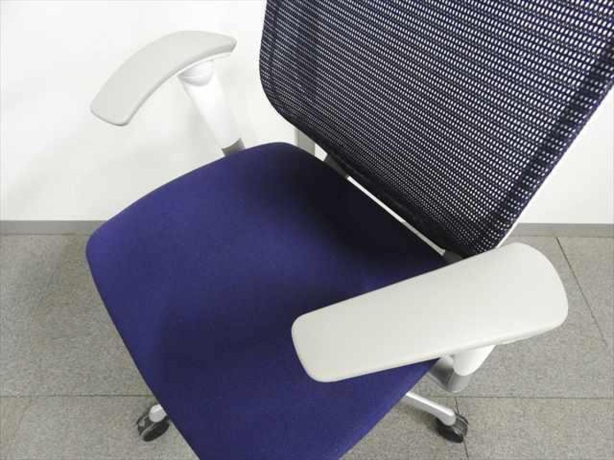 【オフィスの執務室、会議室におすすめ!】 硬めの座面が大人気!国産メッシュチェアの代表格!/オススメ(おすすめ) /人気商品【弊社使用欄:A01036030】■肘付き ハイバック 背面メッシュ ■可動肘 ■ダークブルー × ホワイトシェル/オカムラ(okamura)製 バロン(Baron)チェア