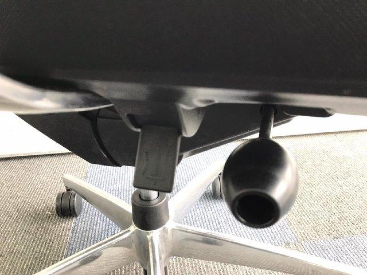 ロッキングは、任意の位置でロックすることが可能で、強さの調節は座面右下のグリップで座った状態で行えます。