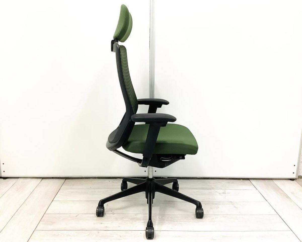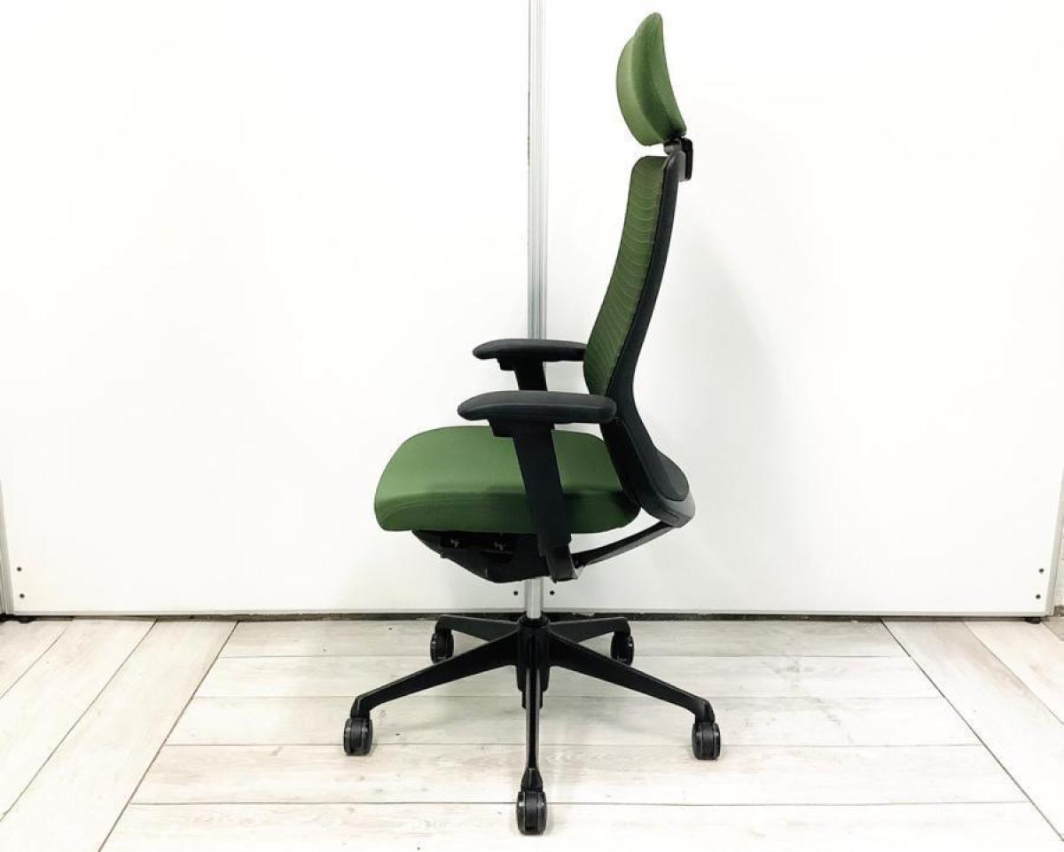 【ヘッドレスト付きならコレ!厚めのクッションで快適な座り心地を実現!】■オカムラ(okamura)製 コーラル(choral)チェア ■エクストラハイバック ■ヘッドレスト付き ■背メッシュ ■グリーン ■デザインアーム〈岐阜・愛知・三重・静岡・福井〉