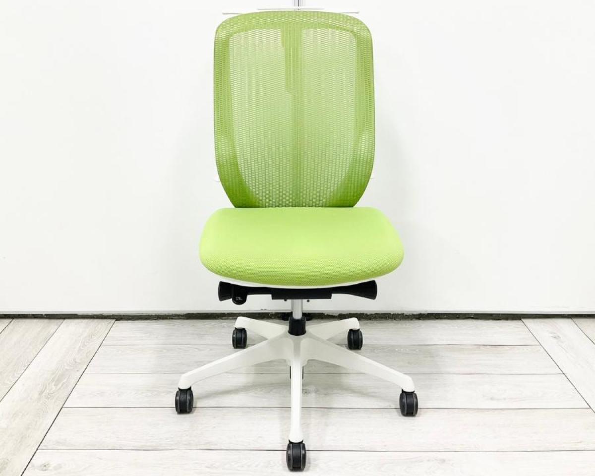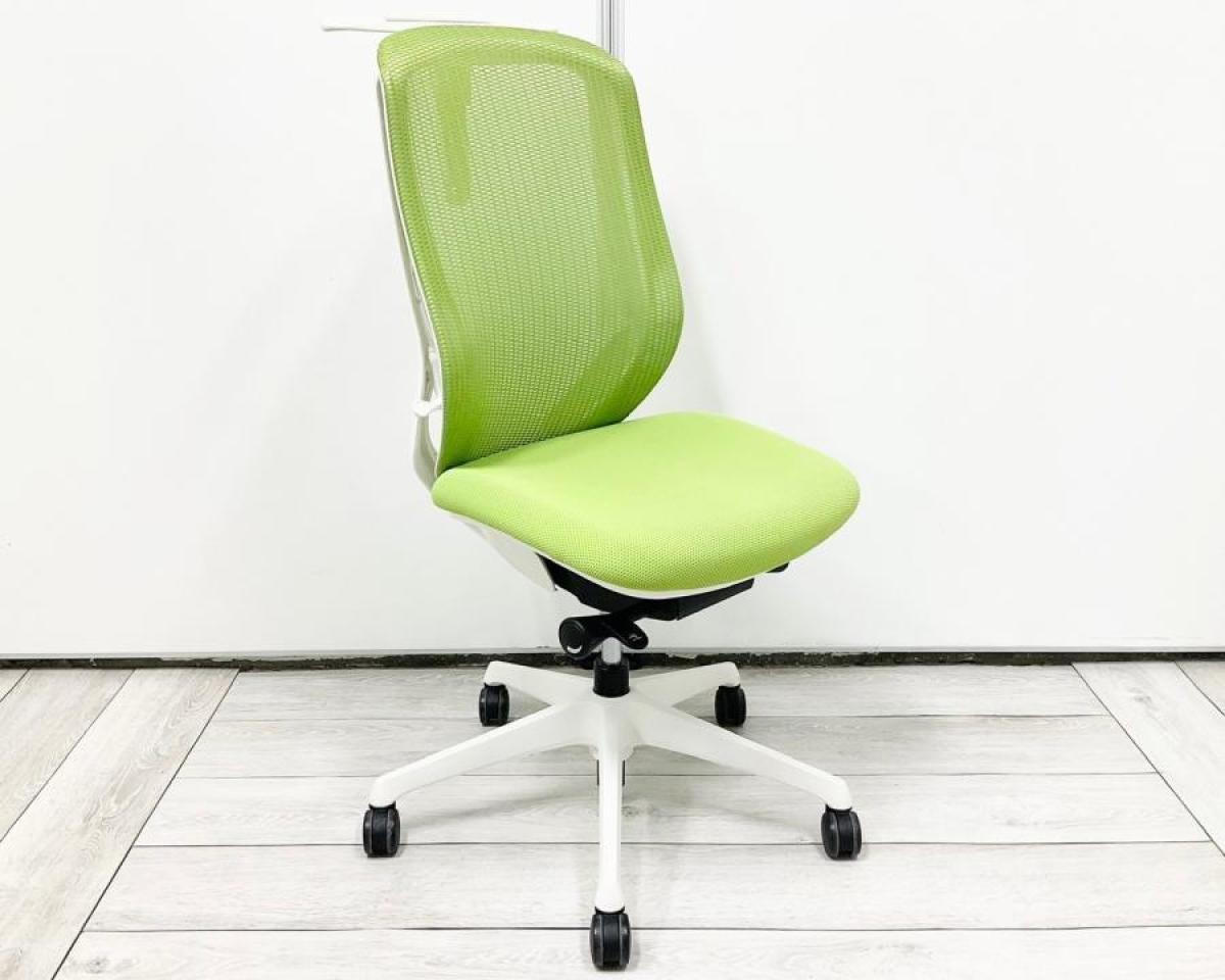 【前傾チルト機能付き】【オカムラ製品で最も人気を集める高機能メッシュチェア!】■オカムラ(okamura)製 シルフィ(Sylphy)チェア 肘無し ハイバック 背面メッシュ ■ライムグリーン×ブラックシェル ※肘付チェアのご案内も可能でございます。
