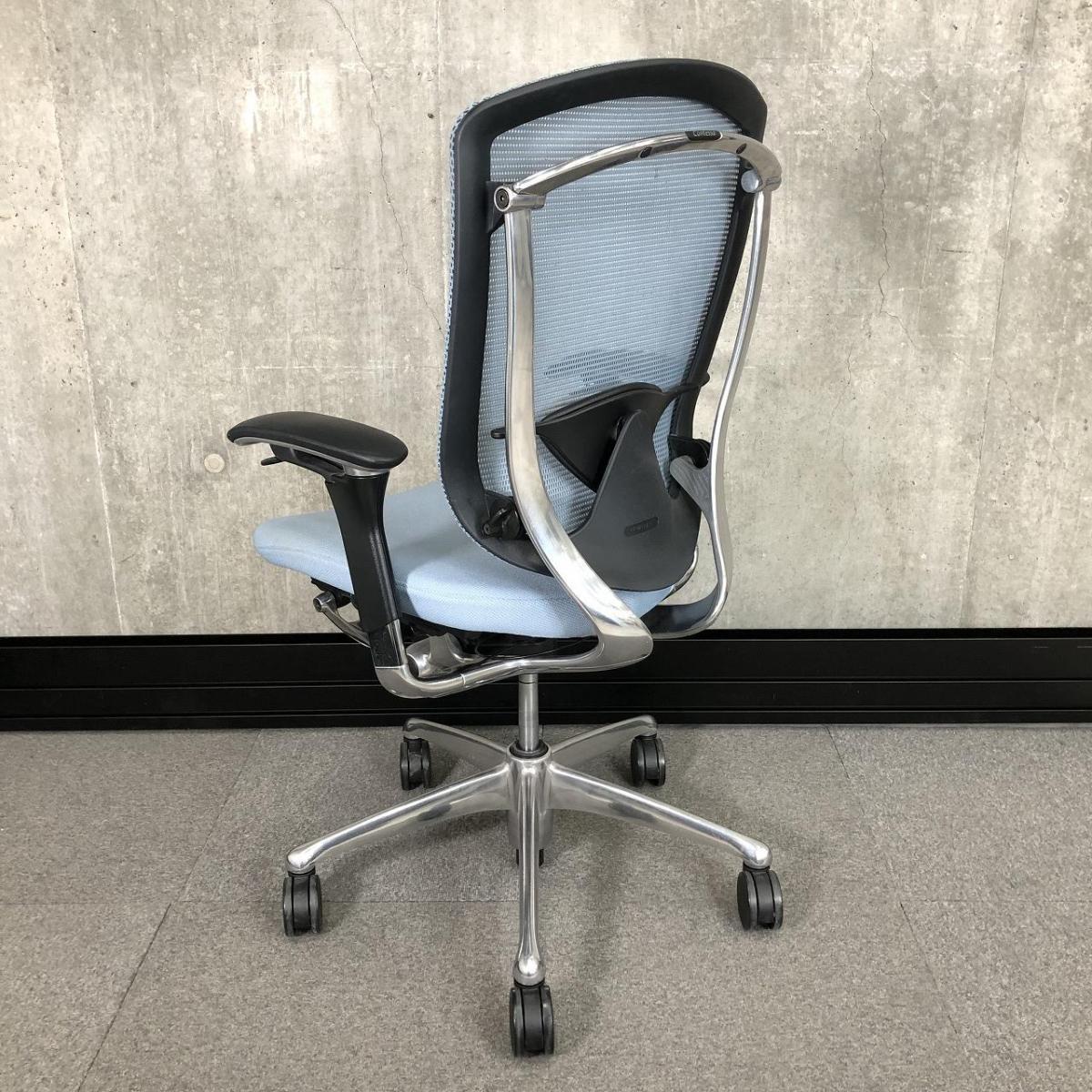 【K9】【商品入替のため、残り7脚限り】【座面に使用感の汚れあり】オカムラ製 コンテッサシリーズ ライトブルー 背面メッシュ ランバーサポート付 可動肘 世界で認められた革新的タスクチェア! 人間工学に基づいた快適な座り心地を実現! 肘付きハイバックチェア!!