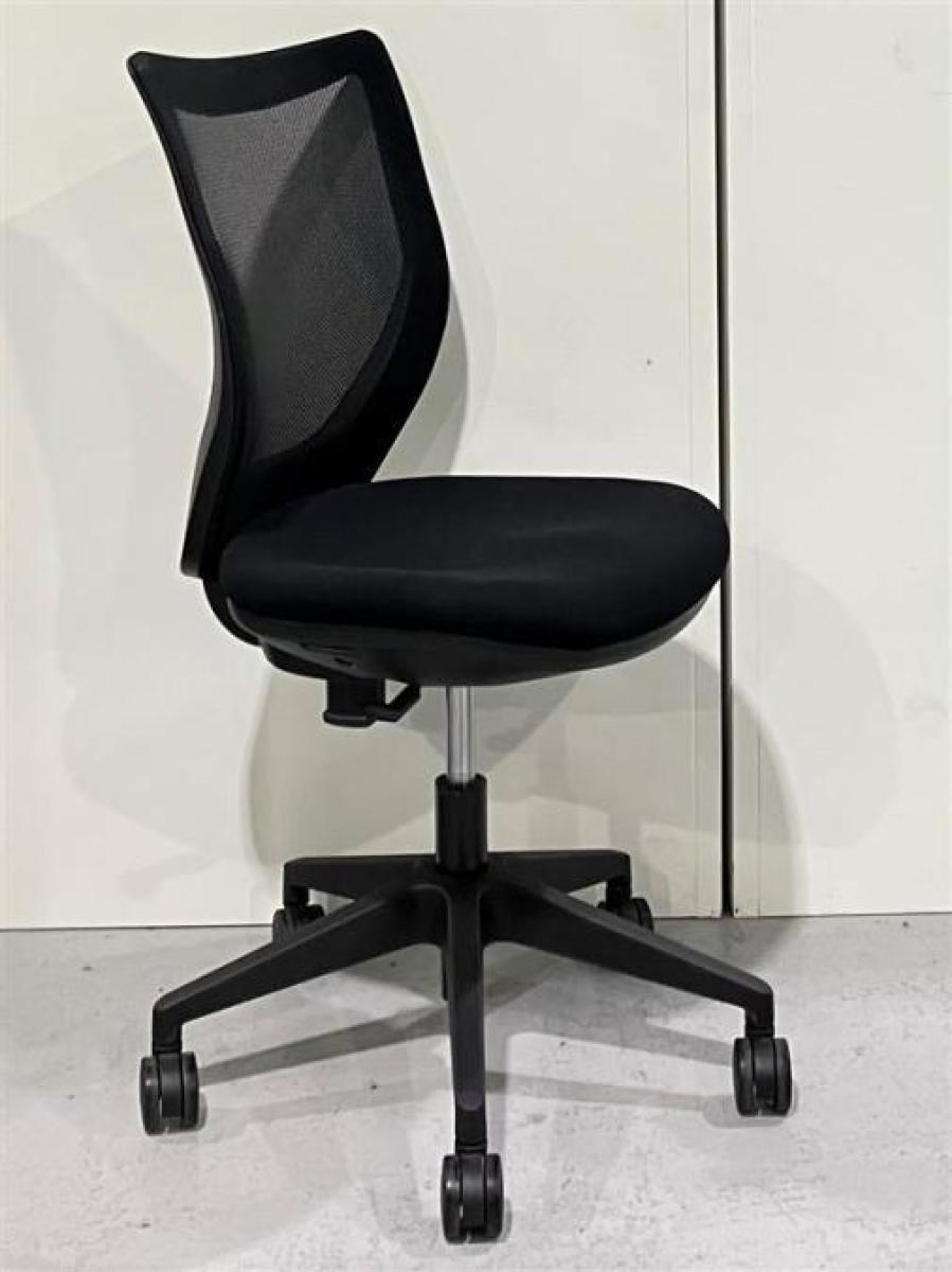 【在庫入替セール】【1脚のみ】【スタイリッシュなデザイン!背面メッシュで熱がこもりにくい!】■トヨスチール製 肘無ローバックチェア ■ブラック ■メッシュバック【T9】- 神戸・三宮店