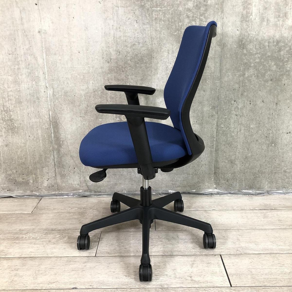 【やわらかな座り心地を実現!腰への負担を減らすS字形状!】■オカムラ(okamura)製 CG-Mチェア ローバック 肘付き ■可動肘 ■背面パッド ■ミディアムブルー×ブラックシェル- 茨城南店