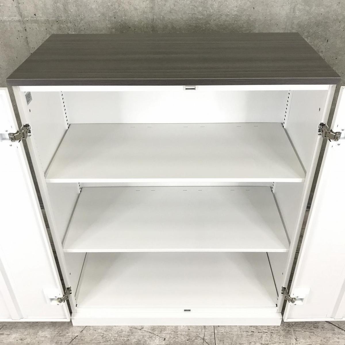【書類の収納スペースを増やしたい方に!収納力抜群な観音開きタイプのキャビネット】■イトーキ製 (ITOKI)製 エスキャビネット(eS) 両開き ローキャビネット H1120㎜ ■ホワイト/天板:木目ブラウン ■シリンダー錠 【フラットで美しい!】- 茨城南店