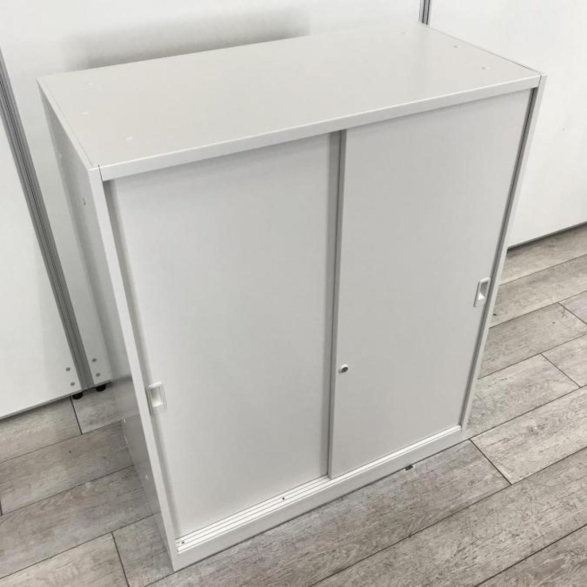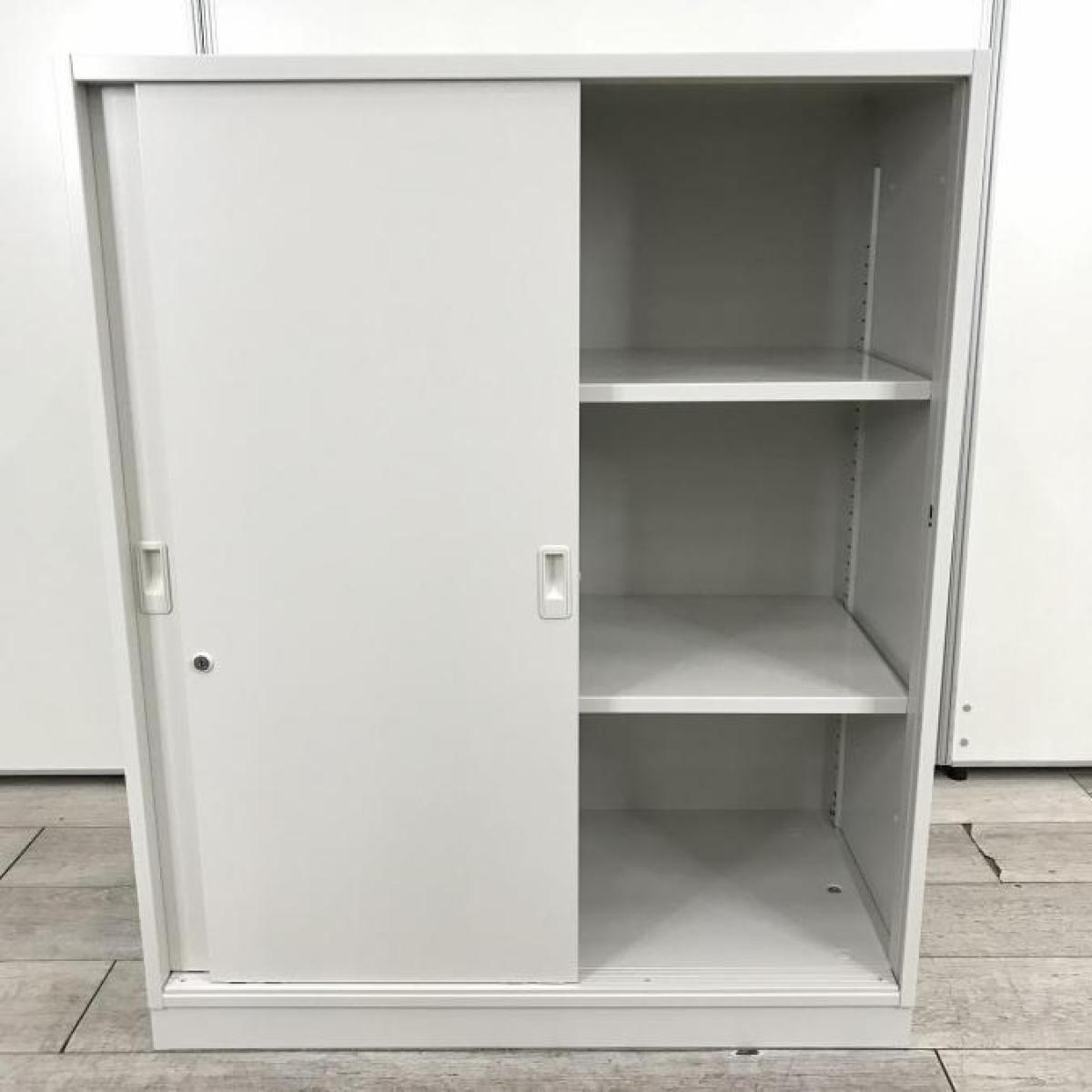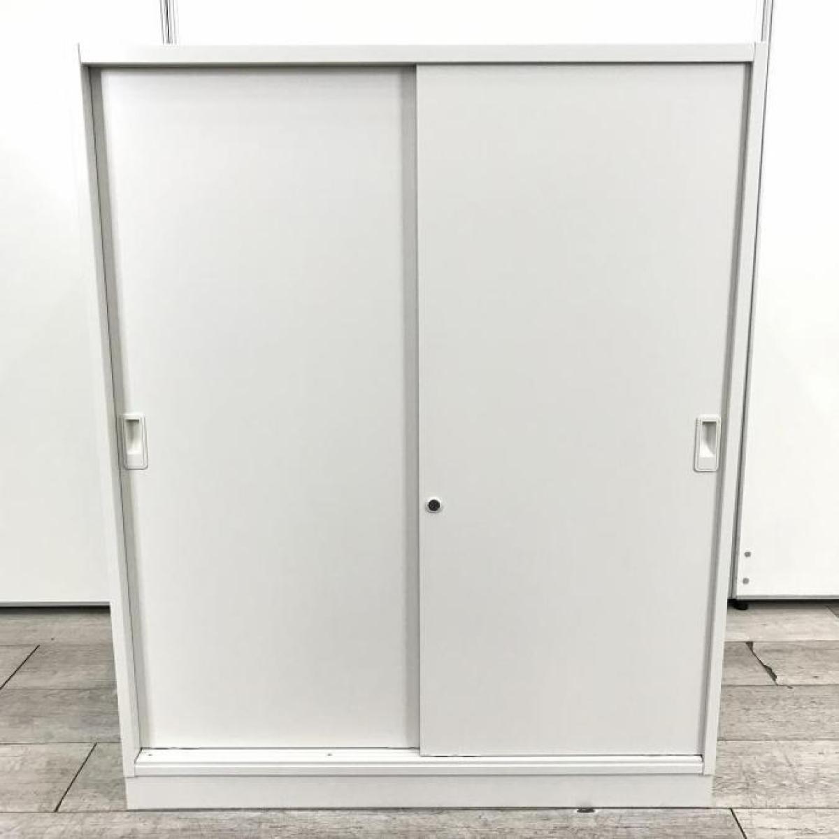 【お問い合わせの多い引違い書庫が入荷!スライド引き戸だから開閉スペースに困りません!】/オススメ(おすすめ) /人気商品【弊社使用欄:A01002091】■2枚引き違い書庫 ローキャビネット ホワイト シリンダー錠- 池袋店