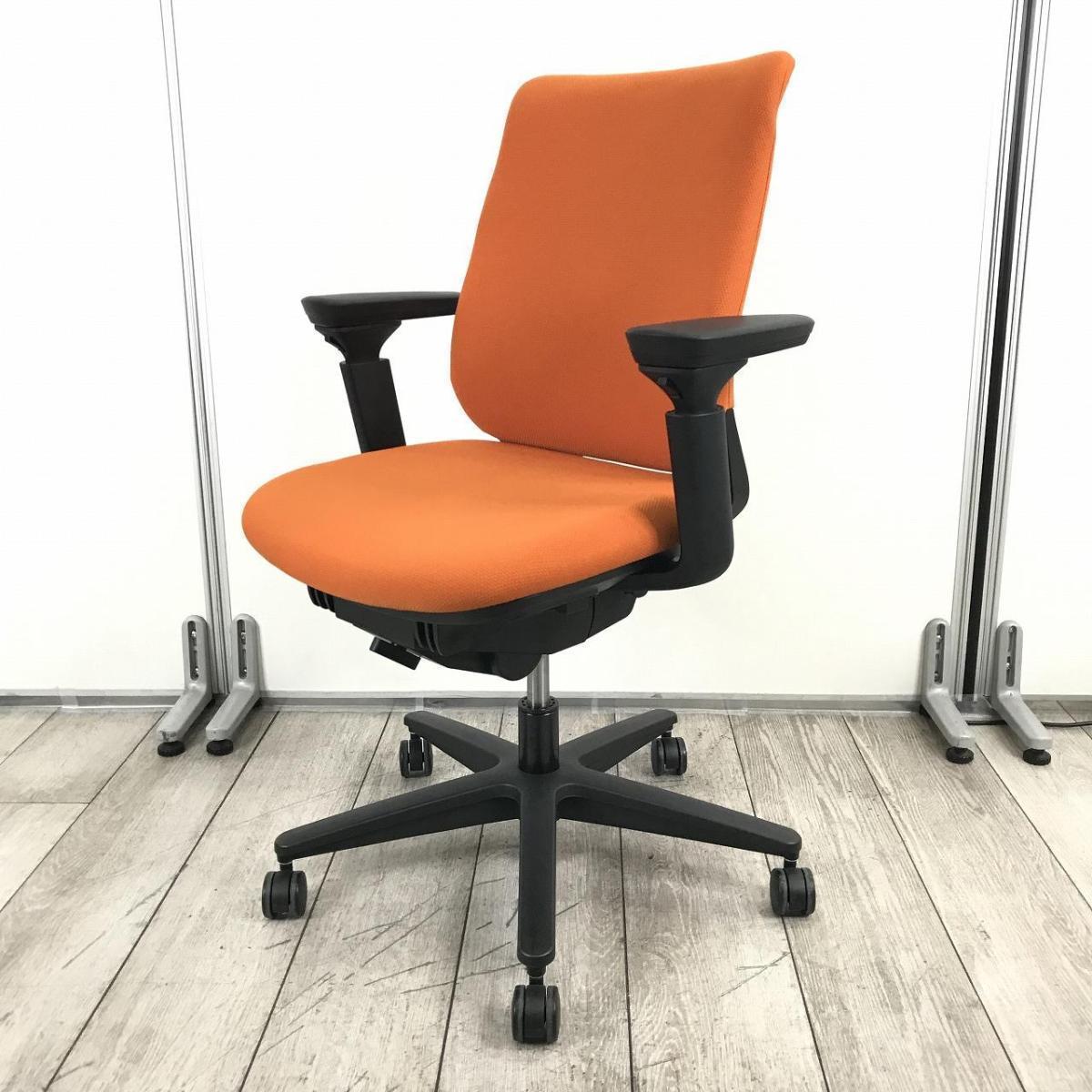 クッション性抜群で良質な座り心地!国内トップクラスメーカーの人気ミドルクラスチェア! ■コクヨ/ミトラ(Mitra)/オレンジ 肘付き ローバック 背面座面クッション ■可動肘付
