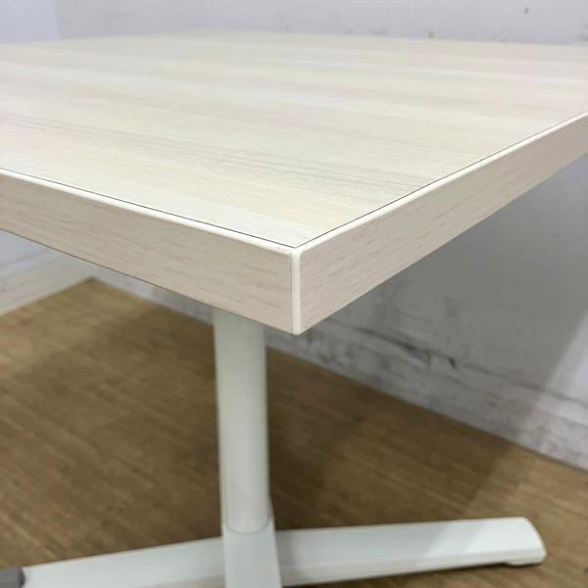 【在庫入替セール品!】使い勝手抜群の人気角テーブルが入荷!天板跳ね上げが可能で収納も便利!打合せの場やリフレッシュスペースにおすすめ! オカムラ/ライブスミーティングテーブル(Lives Meeting Table)/天板:プライズウッドライト/脚:ネオホワイト スタックテーブル(フラップタイプ) キャスターロック付き W750角 正方形テーブル 【ABW】- 立川・八王子店