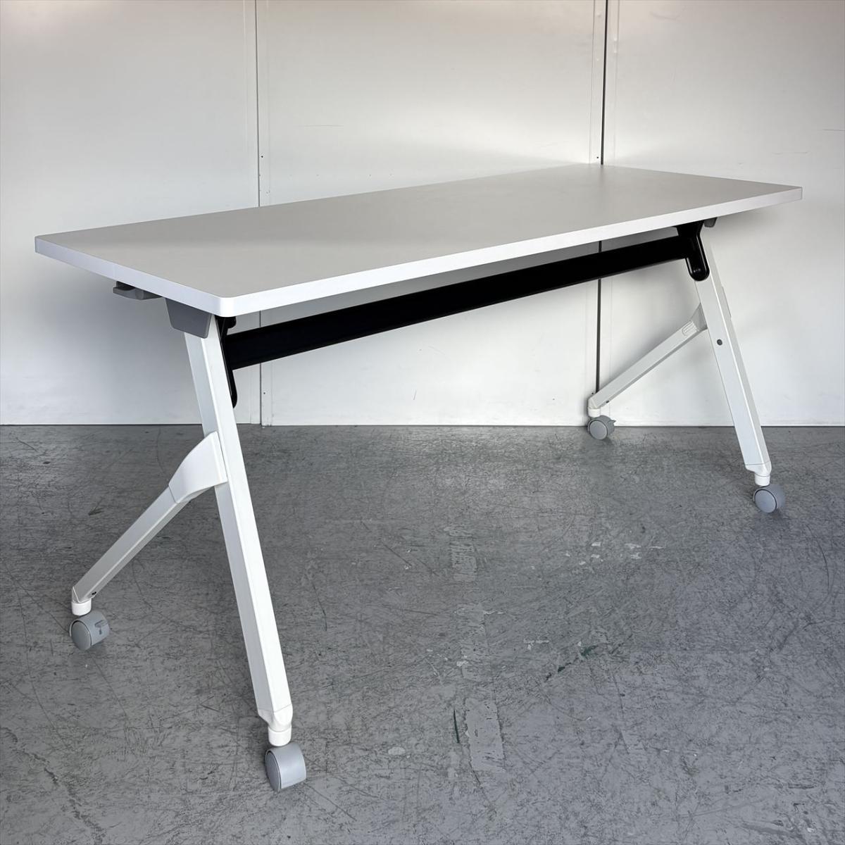 【5台入荷】【倉庫在庫品】【天板跳ね上げ式・キャスター付きのため収納にも便利!定番スタックテーブル!】■オカムラ(okamura) フラプター(FLAPTOR) サイドスタックテーブル サイドフォールドテーブル ■W1500×D600㎜ ■ホワイト ■幕板なし オフィスバスターズ 梅田本店【K10】- 大阪梅田本店
