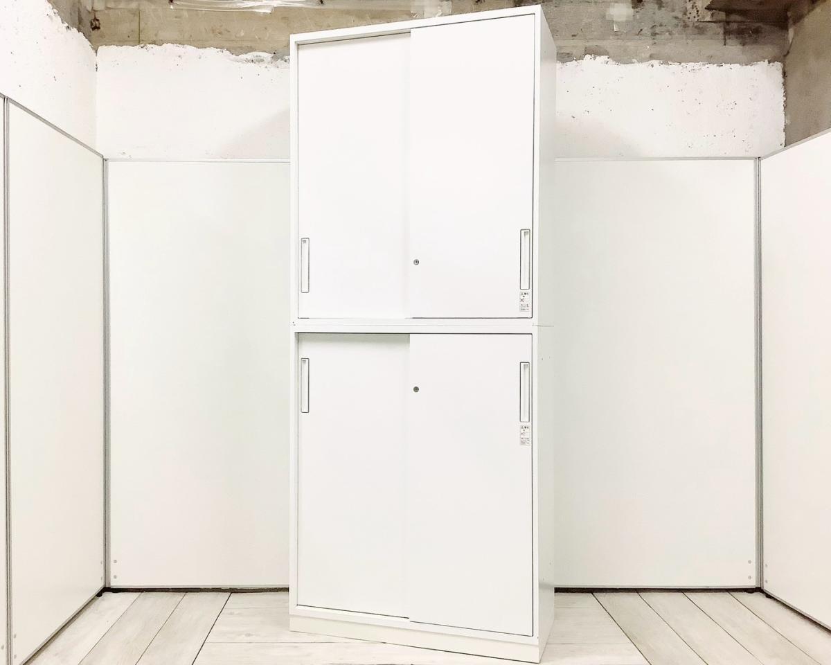 【手狭オフィスで大活躍!導線を確保できる上下引き違い書庫セット!】■コクヨ(KOKUYO)製 エディアシリーズ 上下引き違い書庫セット ハイキャビネット H2150㎜ ■2枚扉 ■シリンダー錠 ■ホワイト