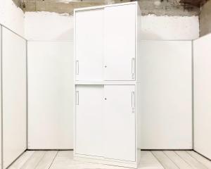 【在庫セール品・7台限定】【T12】■コクヨ(KOKUYO)製 エディアシリーズ(EDIA) 上下引き違い書庫セット ハイキャビネット H2150㎜ ■2枚扉 ■シリンダー錠 ■ホワイト【レアな引き違い書庫セットがロット入荷! 手狭オフィスで大活躍!導線を確保できる上下引き違い書庫セット!】
