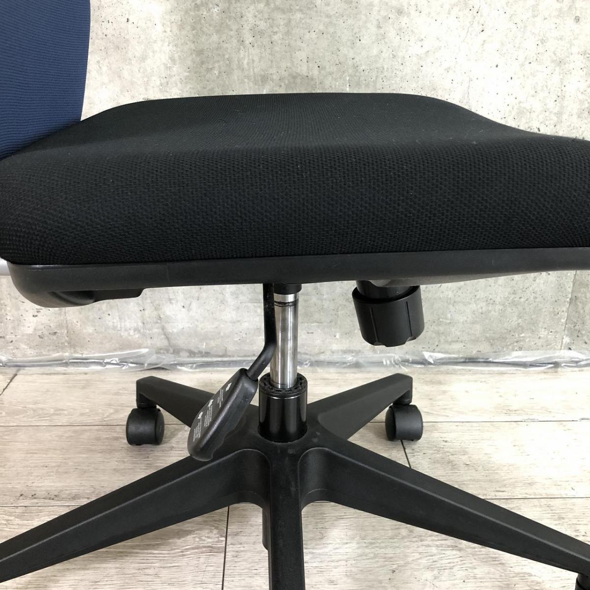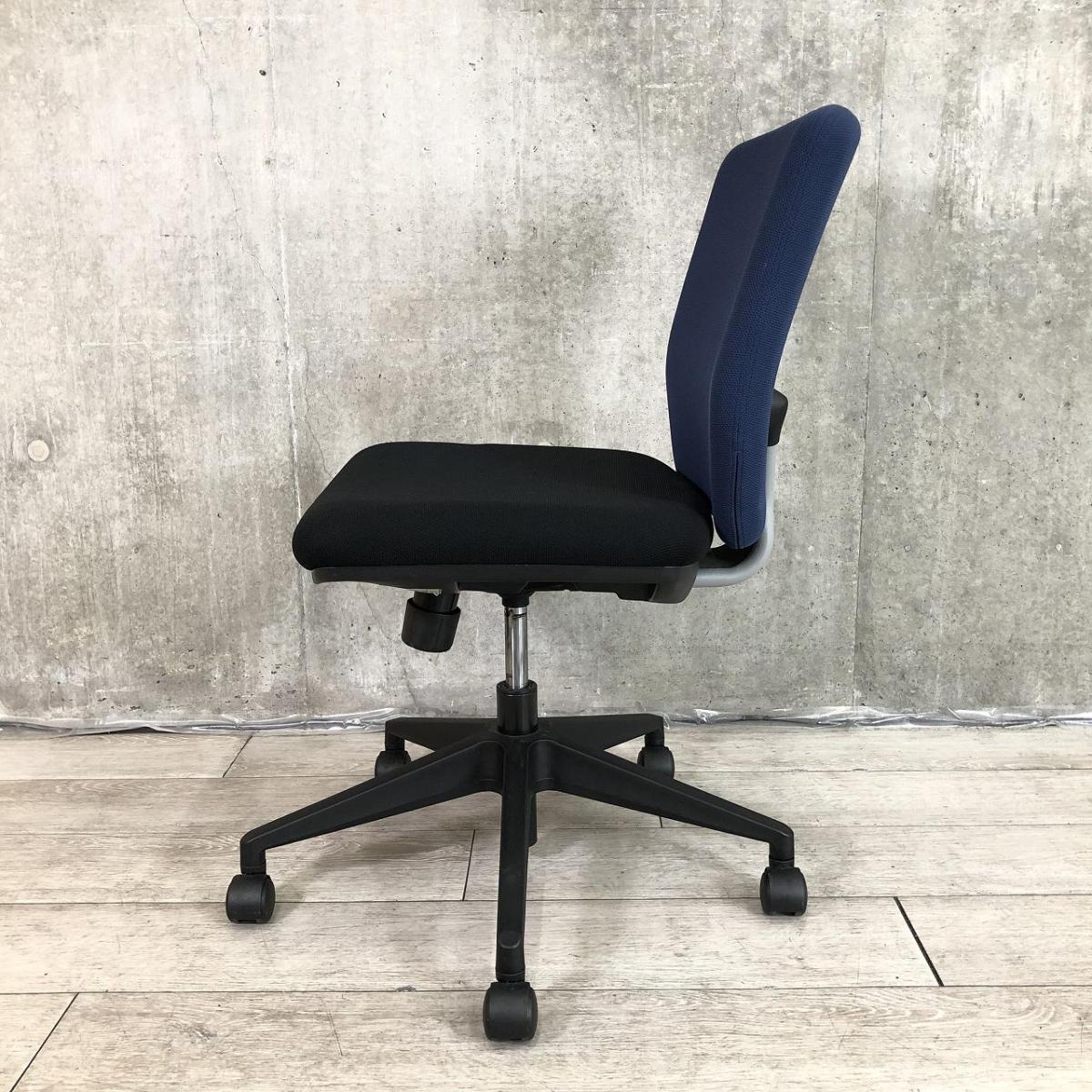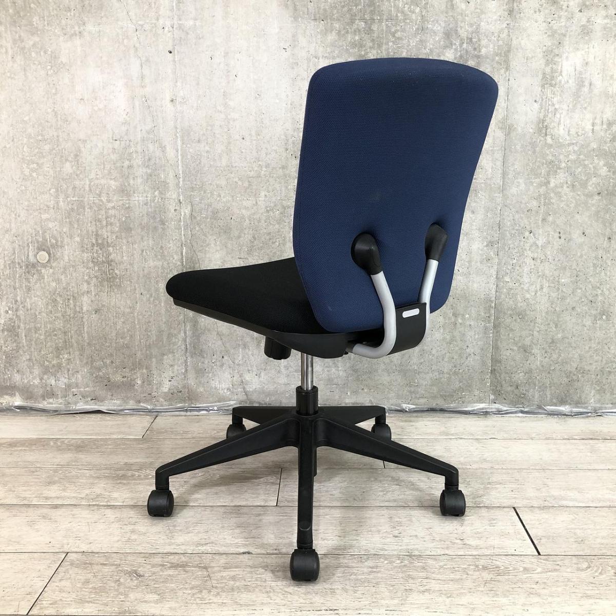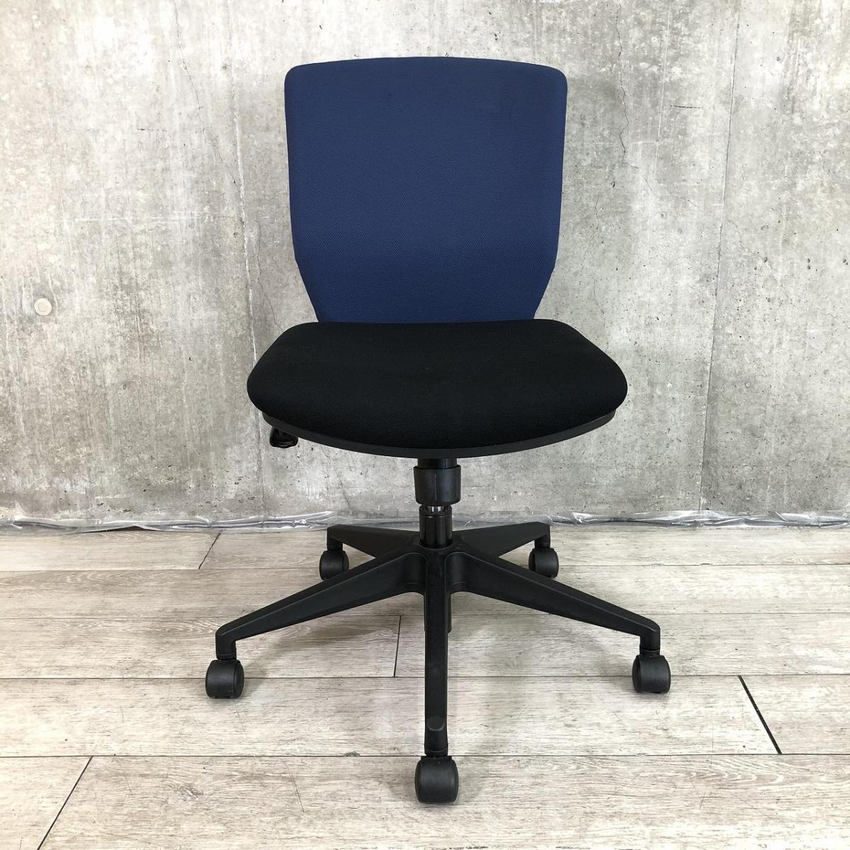 【座り心地が良いゆったりサイズ!強度を保つ2本の支柱をアクセント!】■プラス(PLUS)製 ネクシス(NEXIS)チェア 肘無ローバック ■背面ブルー/座面ブラック- 新大阪店