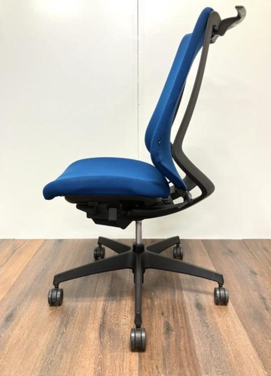 【在庫入替セール】コクヨ デュオラ 肘無しモデル クッションタイプ ブルー×ブラックフレームの定番のカラーリング コートハンガー付き ※背もたれに破れ有り【T9】