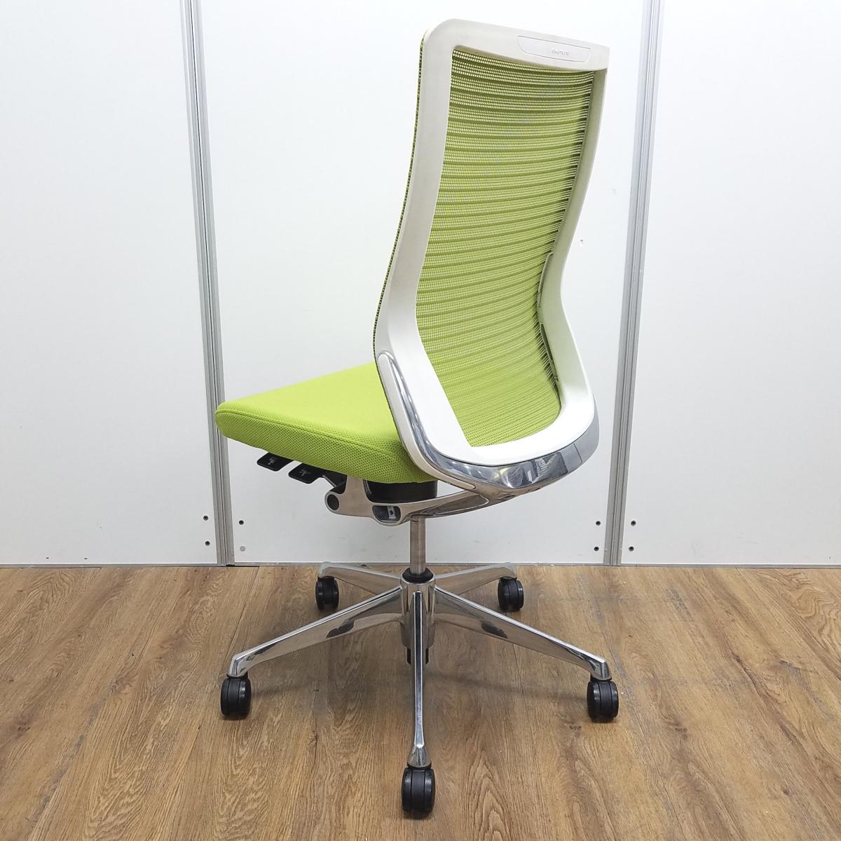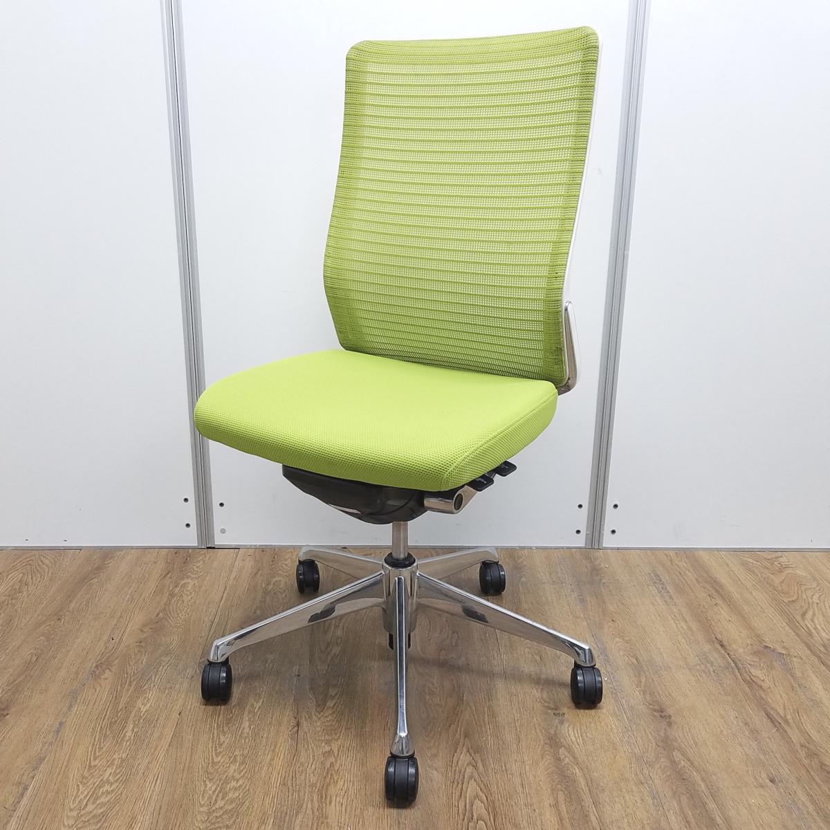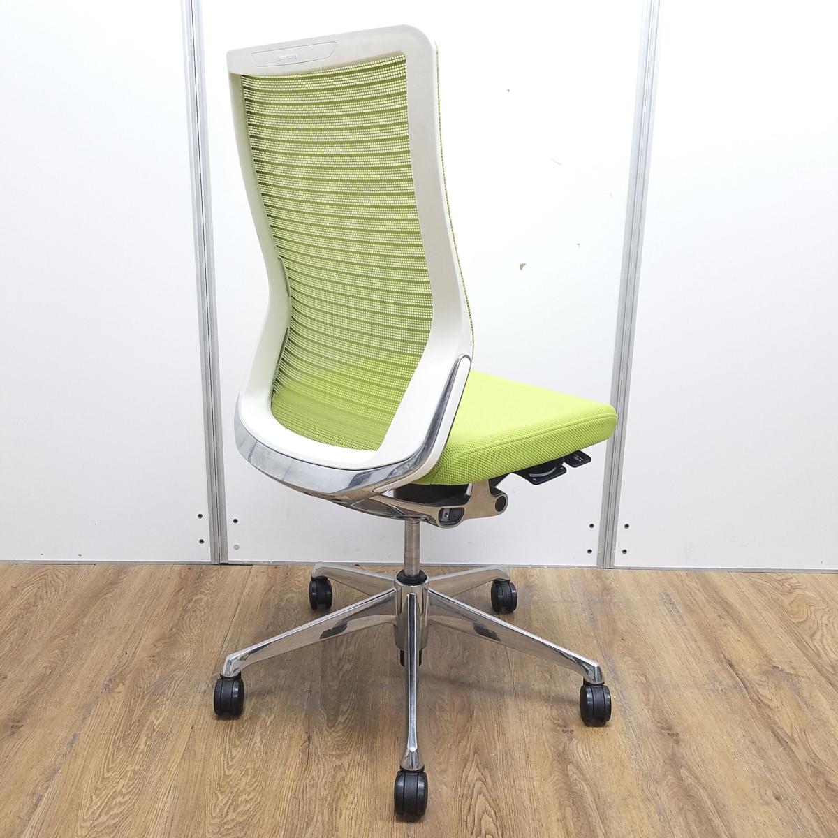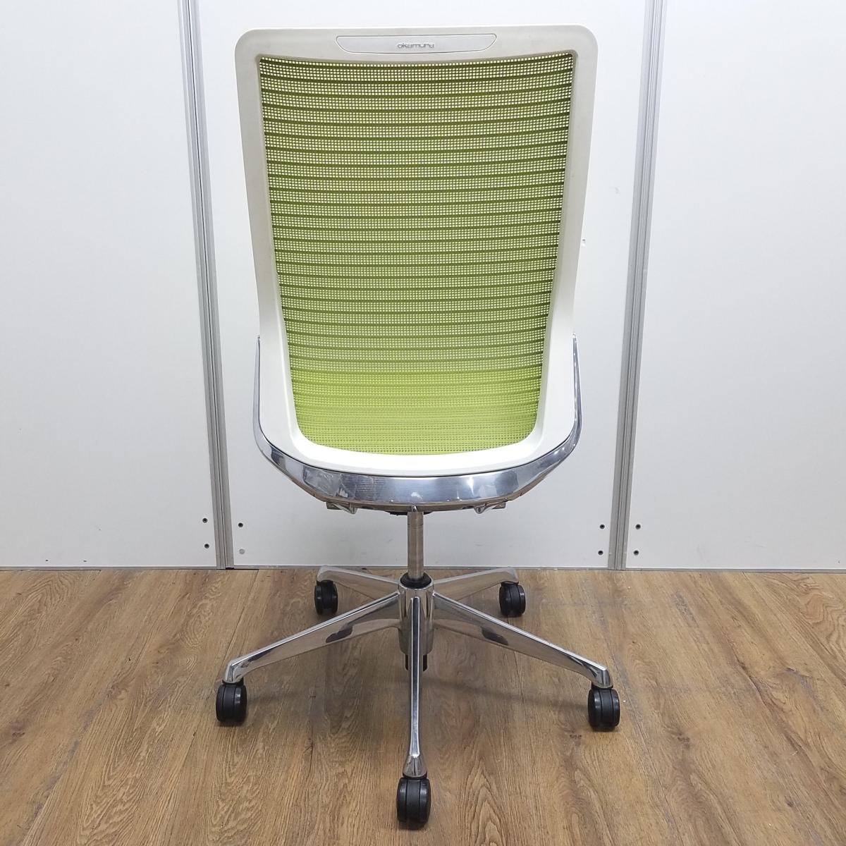 ★【T10】【商品入替のため、残り1脚限り】オカムラ製 コーラル(Choral) ライムグリーン ホワイトシェル ハイバック 座面前後 チェア 背面メッシュ どんな空間にも調和するデザインと最上級の操作性! 肘無しハイバックチェア!!サーキュラーバリューCO2削減量の算出について