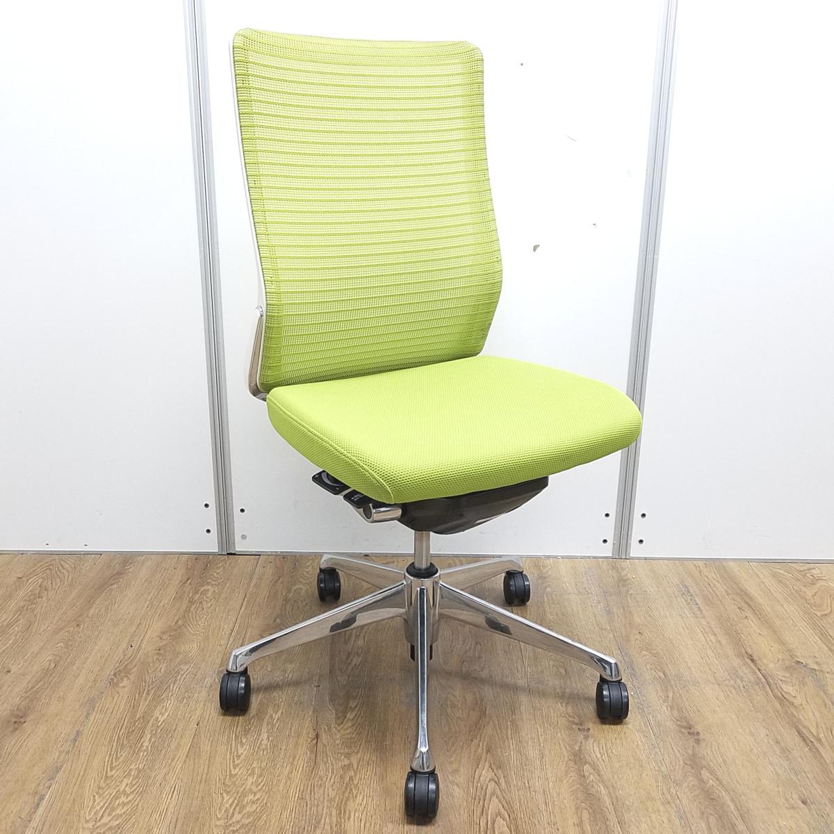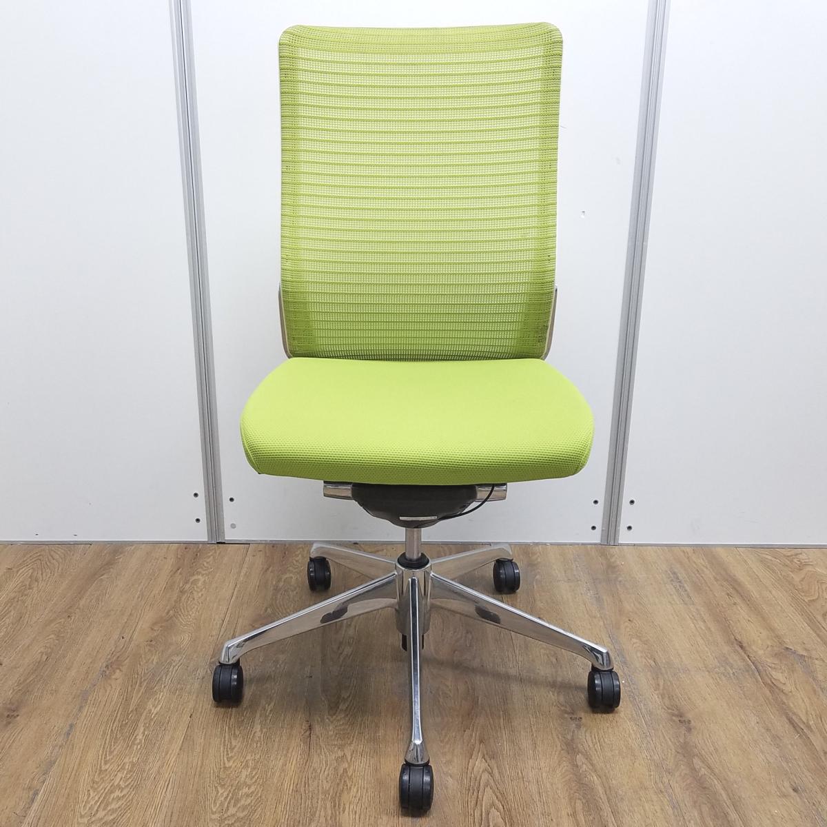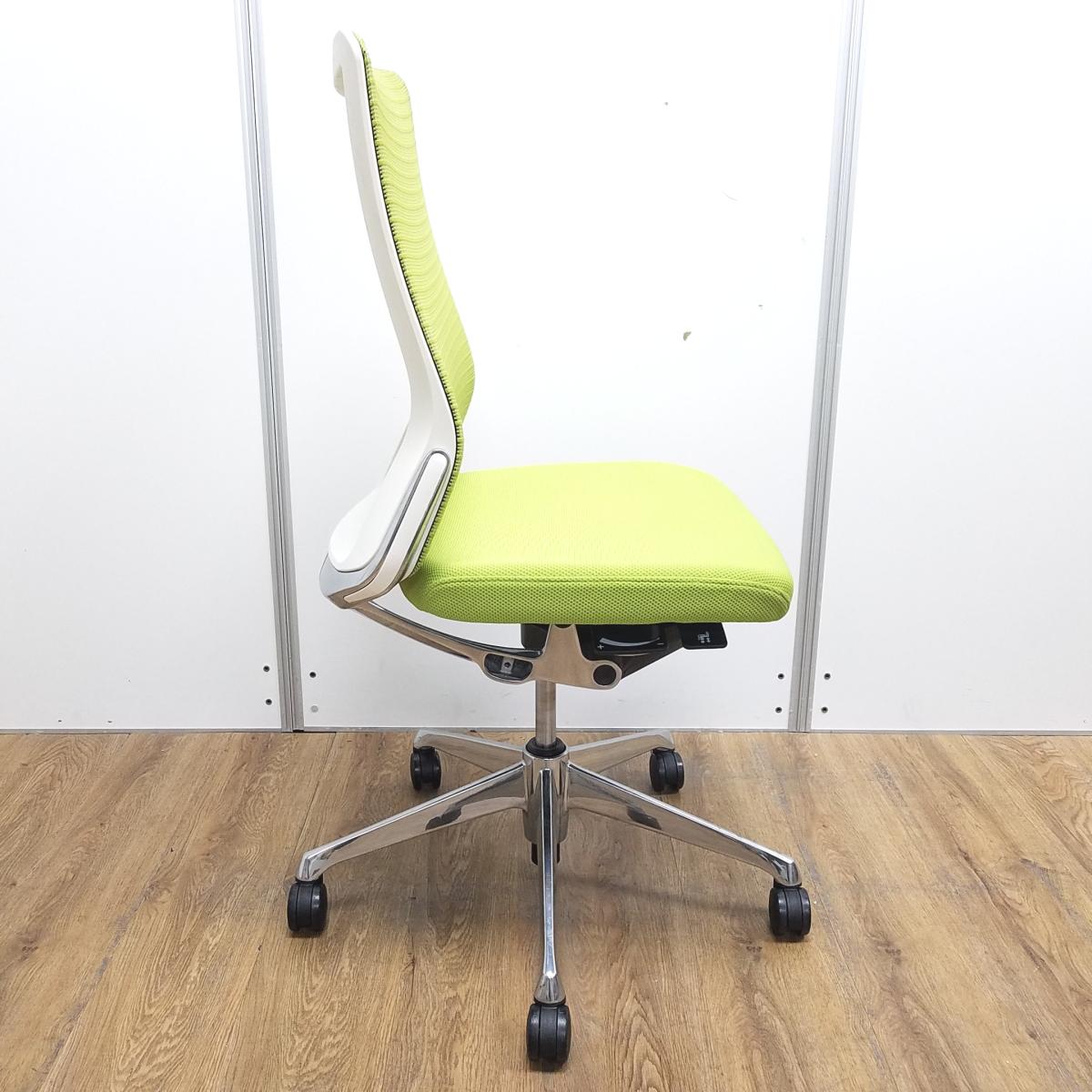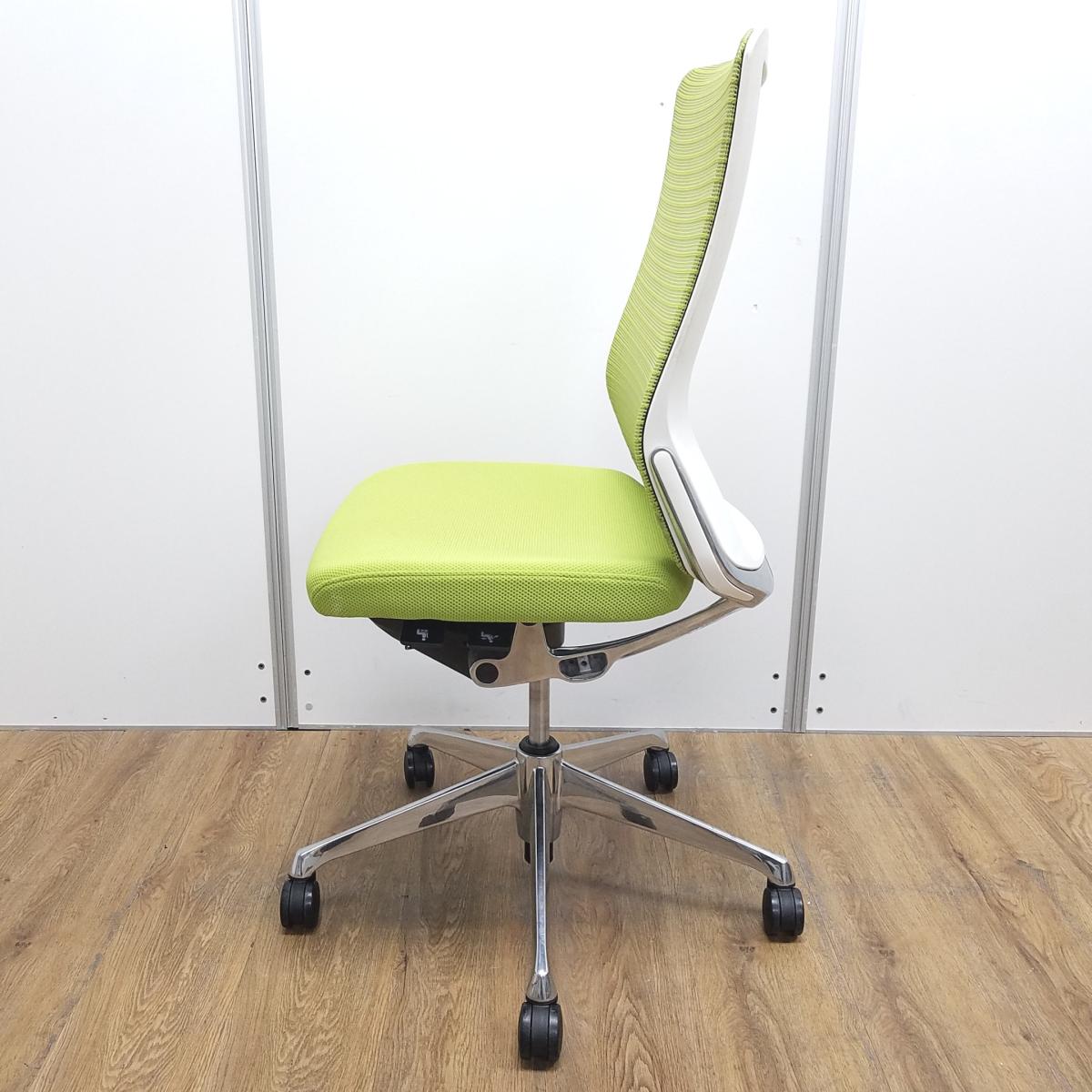 ★【T10】【商品入替のため、残り1脚限り】オカムラ製 コーラル(Choral) ライムグリーン ホワイトシェル ハイバック 座面前後 チェア 背面メッシュ どんな空間にも調和するデザインと最上級の操作性! 肘無しハイバックチェア!!サーキュラーバリューCO2削減量の算出について