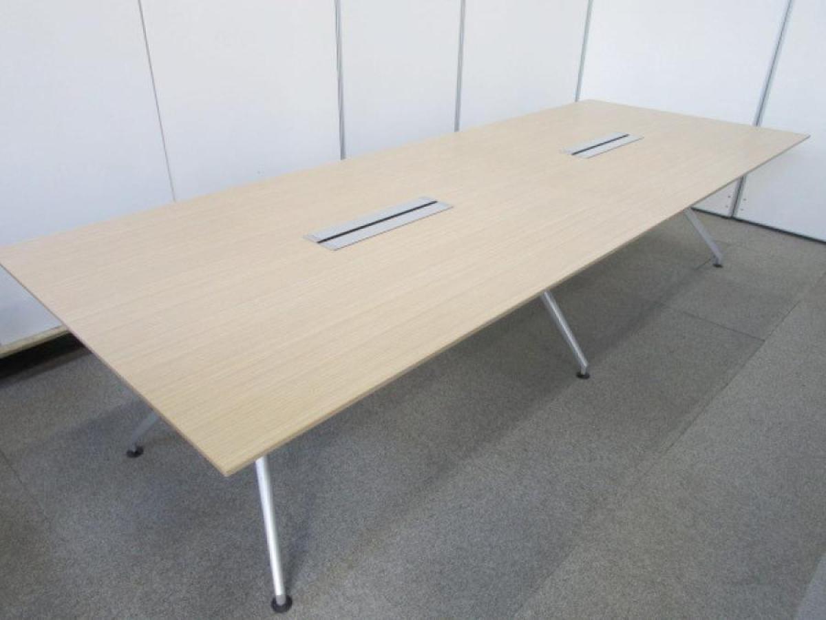 【会議室だけでなく休憩室でも!6~8名様対応・大型テーブル】■イトーキ(ITOKI) DDDシリーズ ミーティングテーブル 会議テーブル 幅2400×奥行900mm ■木目ナチュラル天板 脚シルバー色 オフィスバスターズ東大阪店