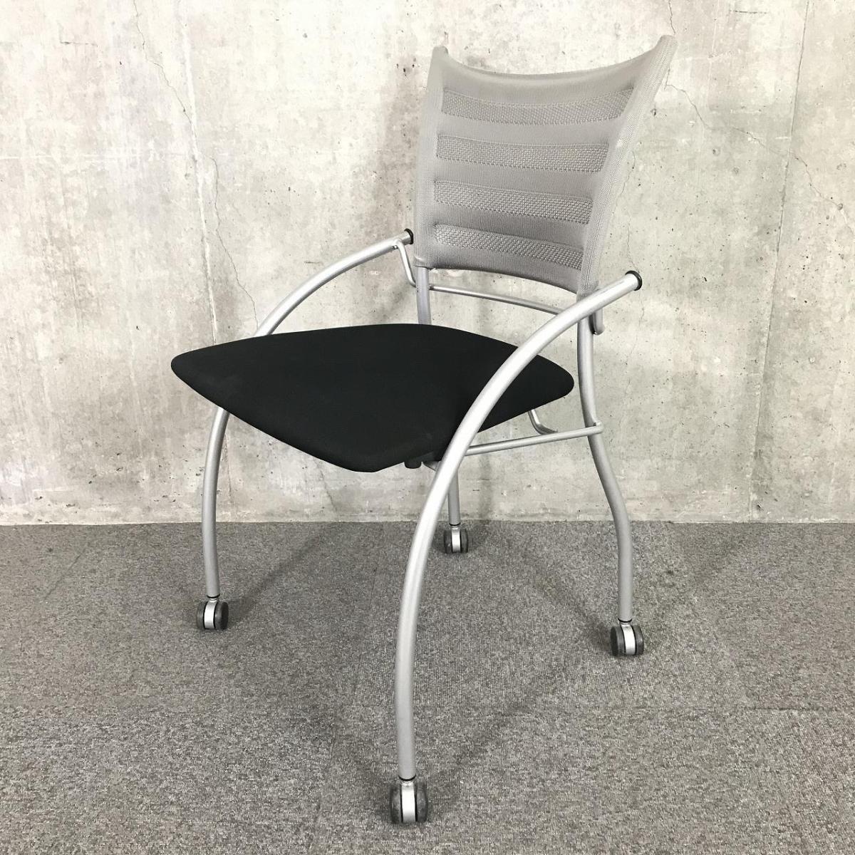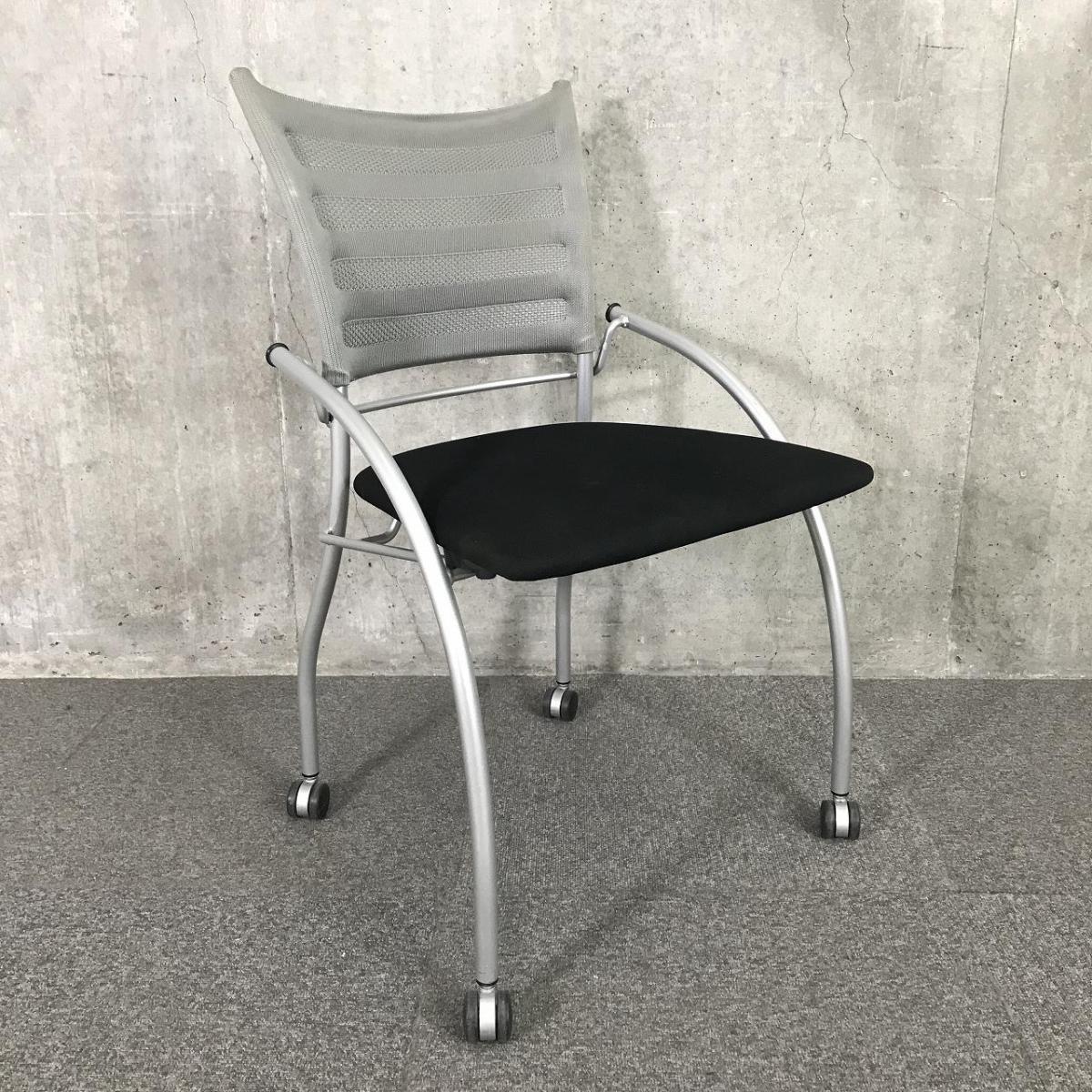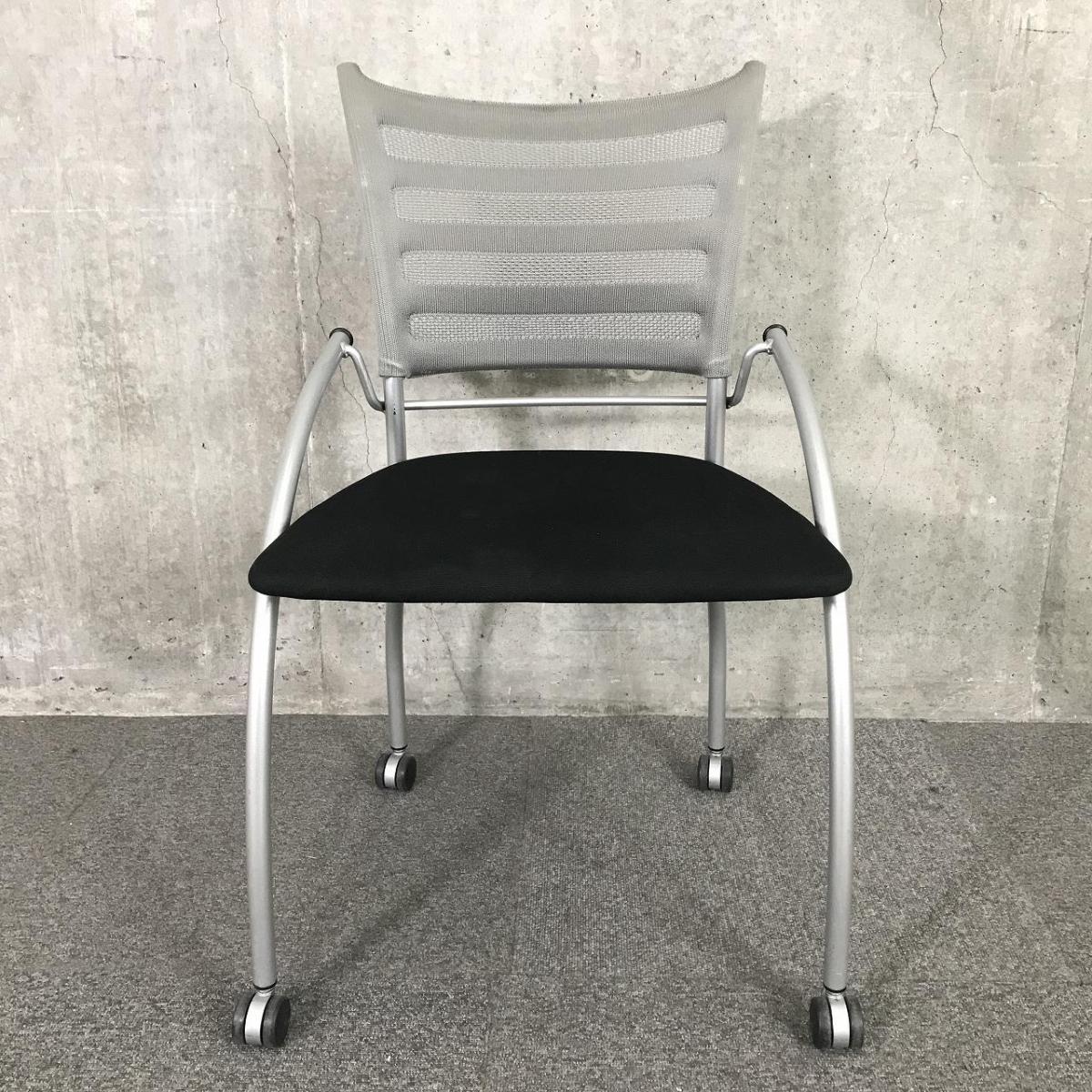 【在庫入替セール】【背もたれにメッシュ素材を使用した、軽快なデザイン!】■イトーキ(ITOKI) プリエ2シリーズ ネスティングチェア ミーティングチェア 会議用 肘無 ■背面メッシュ キャスター付 ■背面:グレー/座面:ブラック【T8】- なんば日本橋店