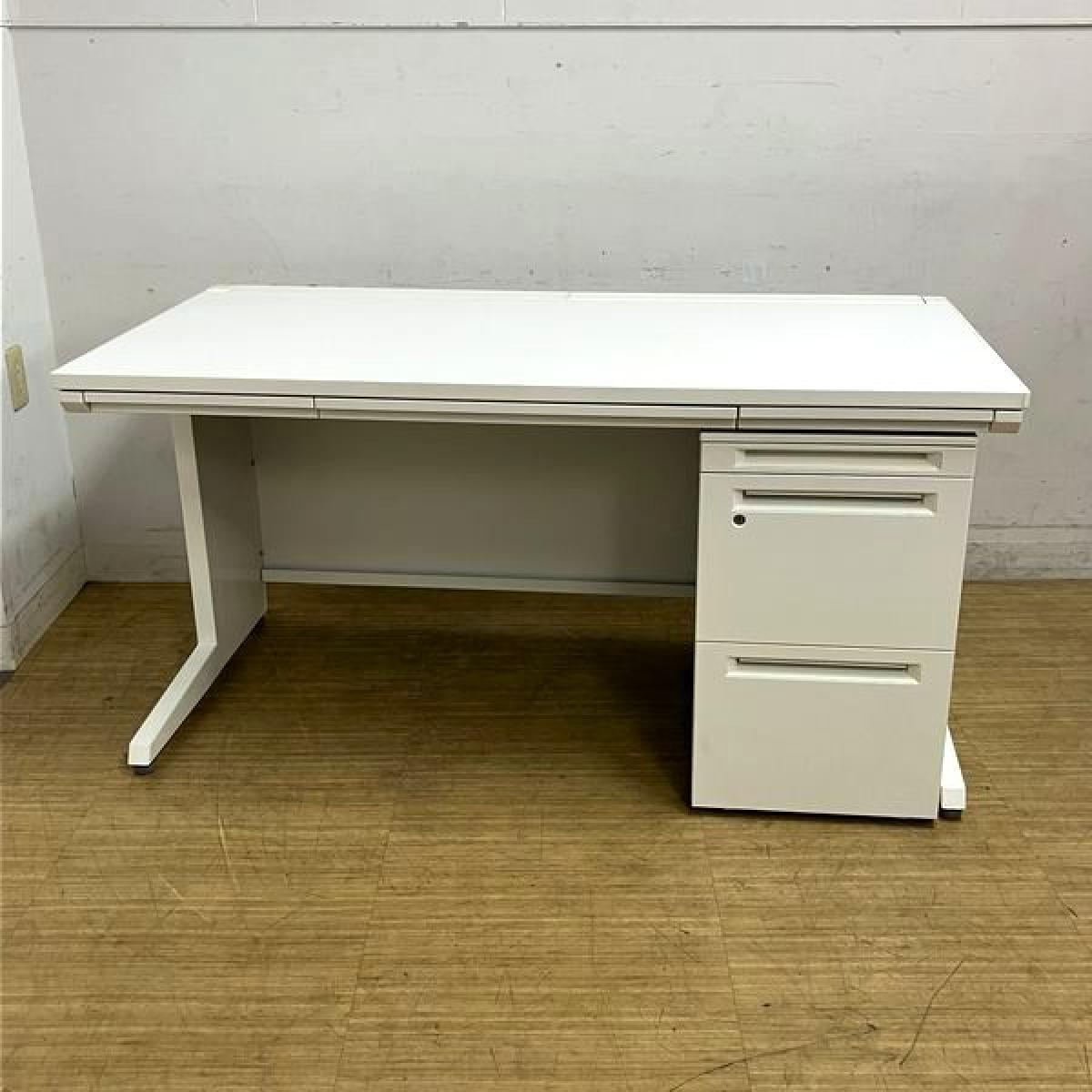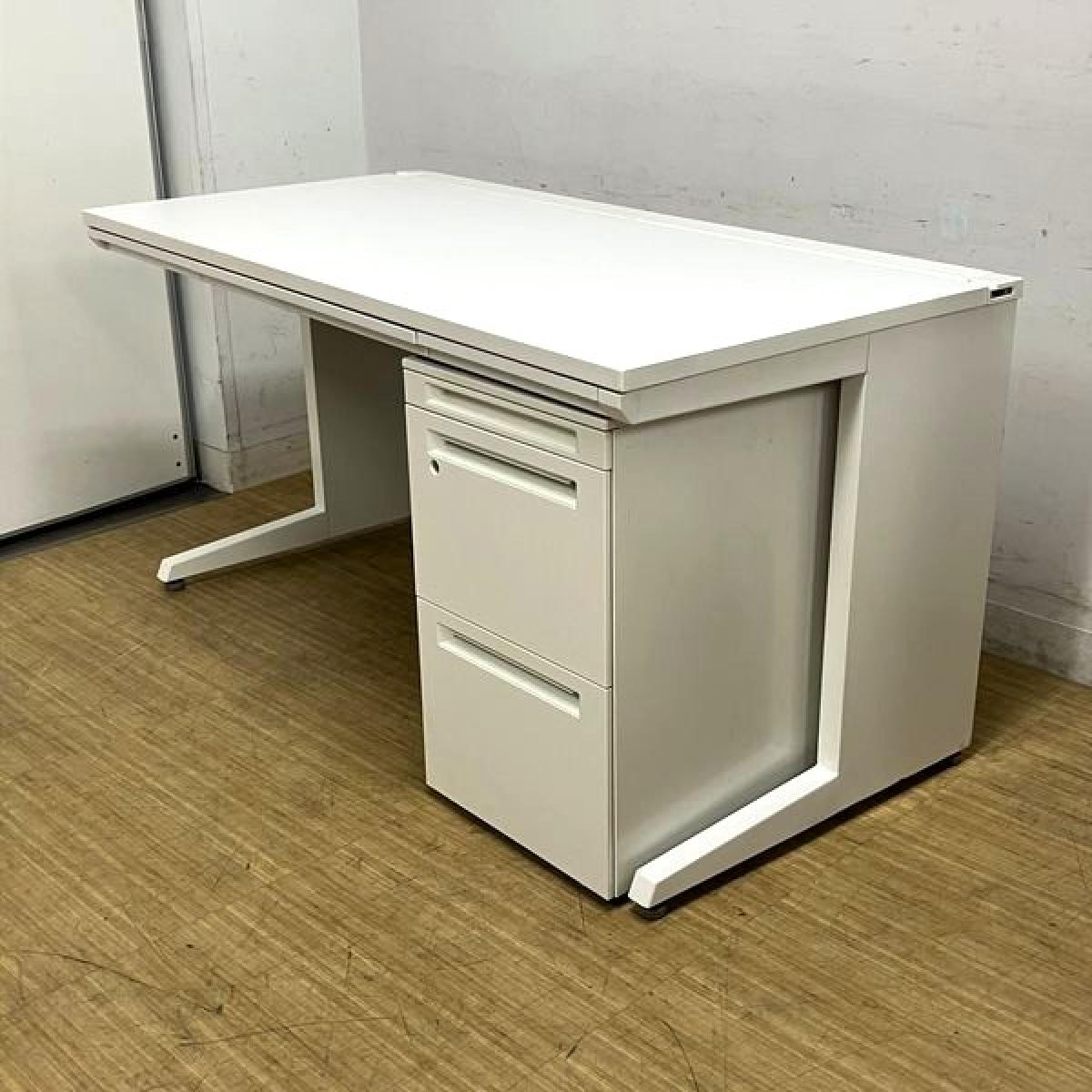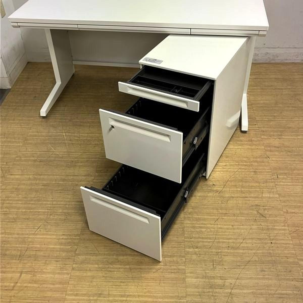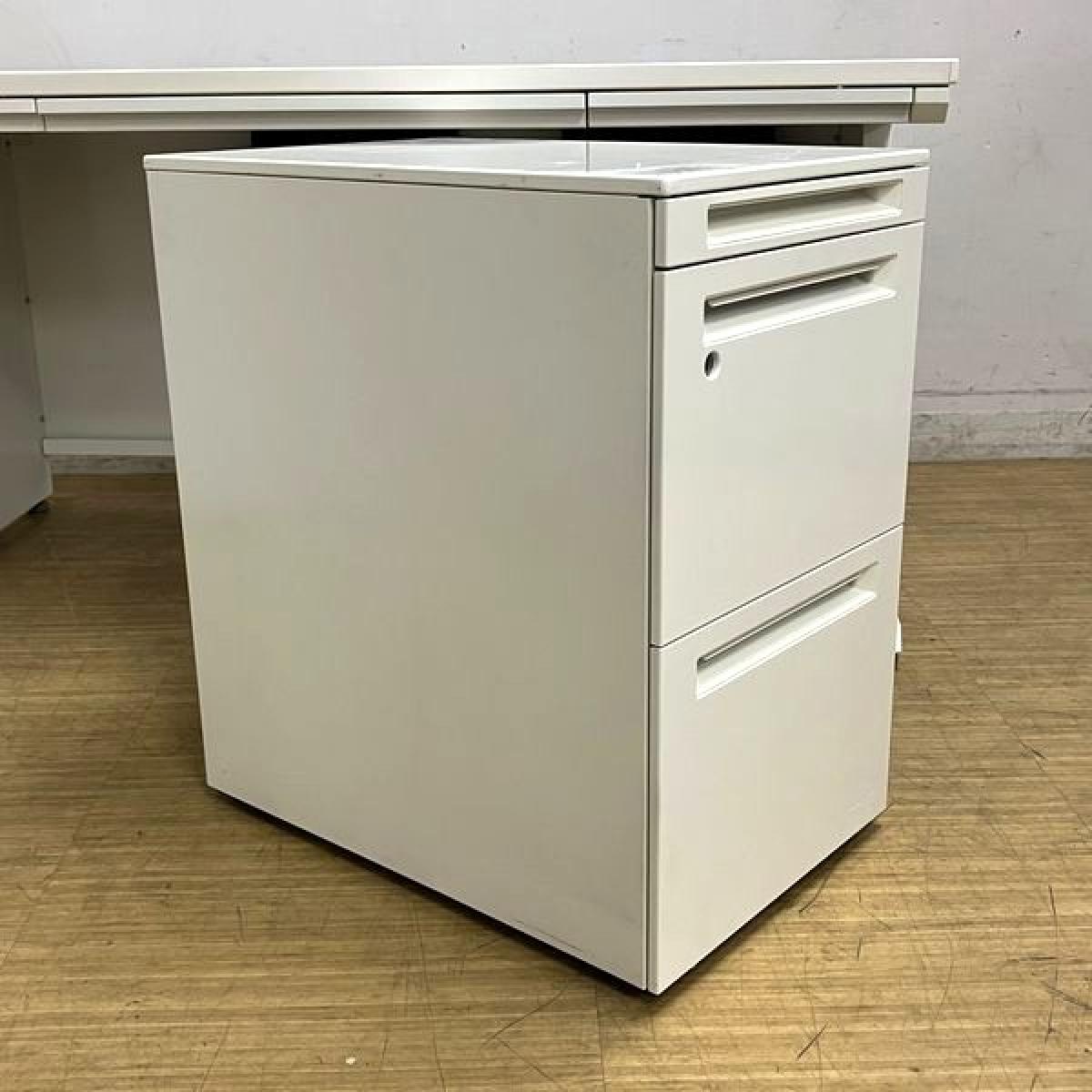 【セットでお買い得!横幅1400の平机と3段ワゴン!疑似片袖机】 オカムラ アドバンス ホワイト 引き出し付き ネオホワイト【収納が欲しいかたにはオススメ】