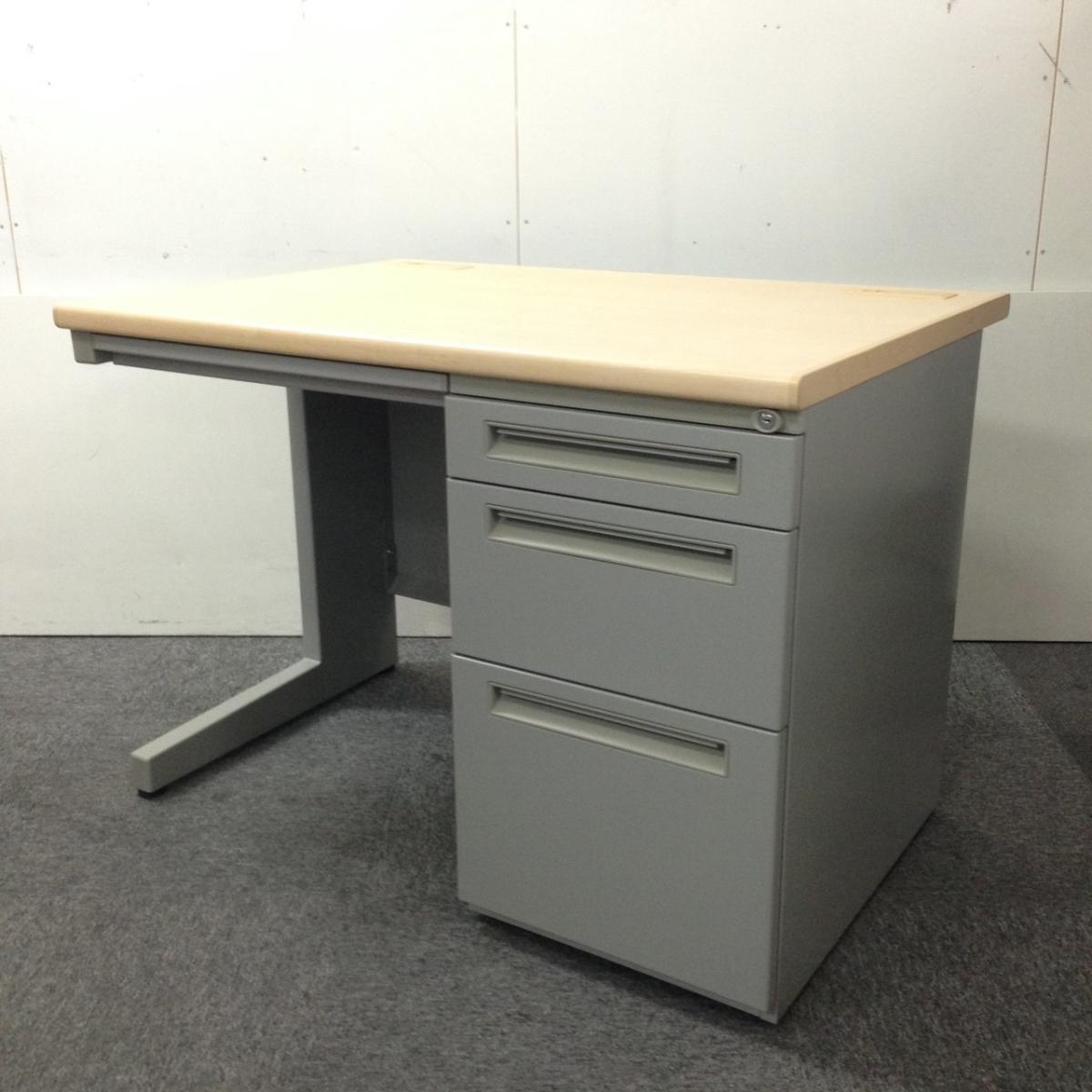 【在庫入替特価】【1台限定】【幅1000mmのコンパクトサイズでもさすがの収納力!】■ウチダ(UCHIDA)製 フィード(FEED) 片袖机 W1000mm ■天板:ナチュラル調 本体:グレー ■シリンダー錠【K10】