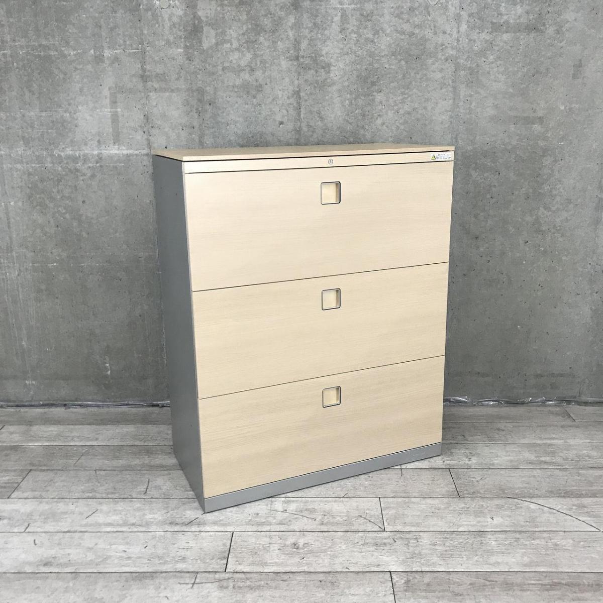 【珍しいカラーリング!高品質で使いやすい人気の3段引き出し式書庫!】■オカムラ(okamura)製 レクトラインシリーズ 3段ラテラル書庫 ローキャビネット ■本体:シルバー 天板:ナチュラル木目調 ■シリンダー錠【2507】弊社使用欄【K】サーキュラーバリューCO2削減量の算出について