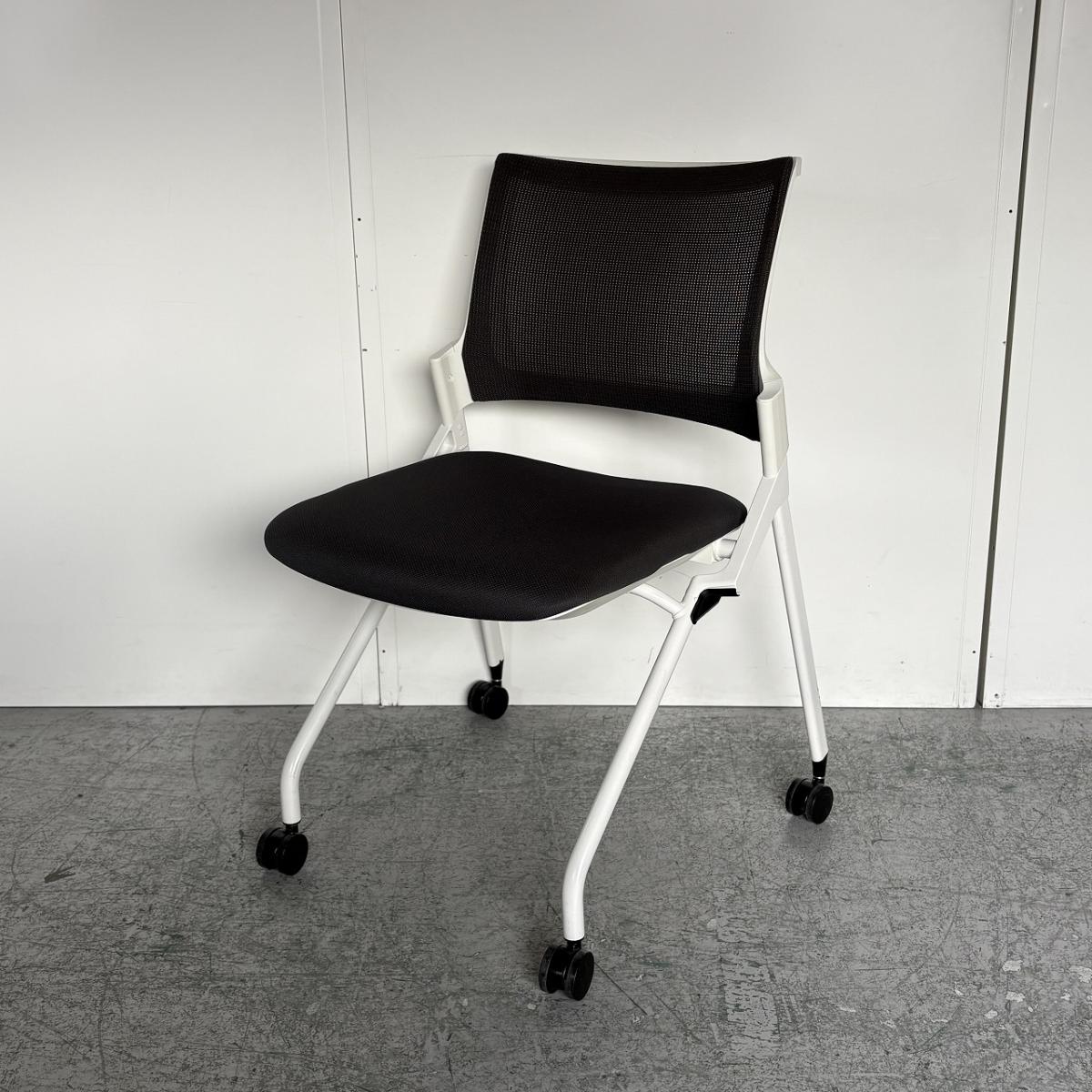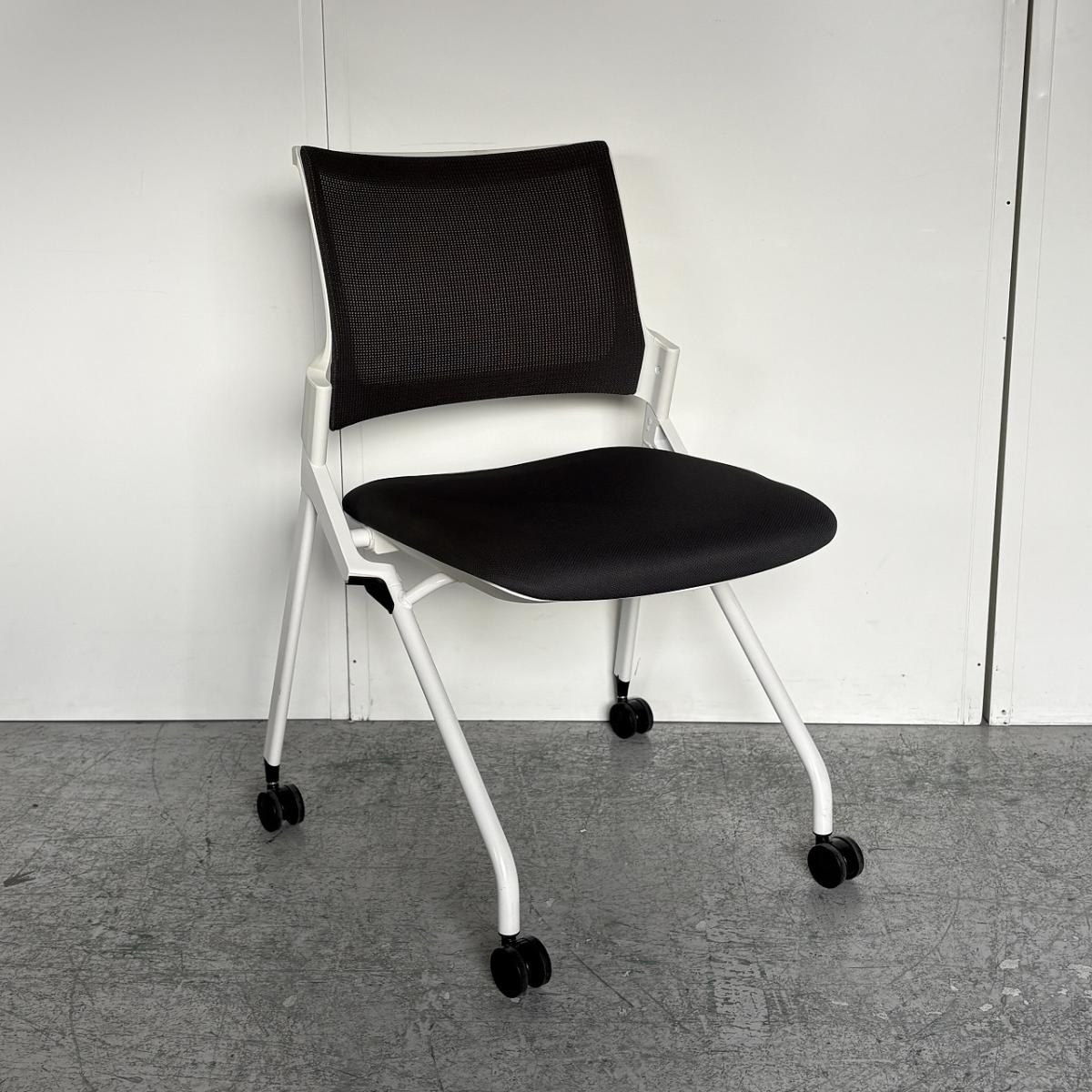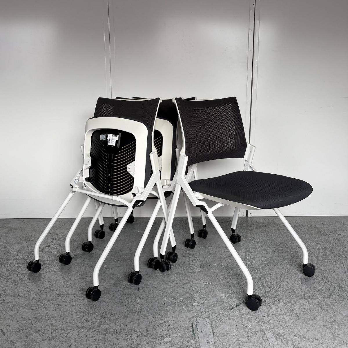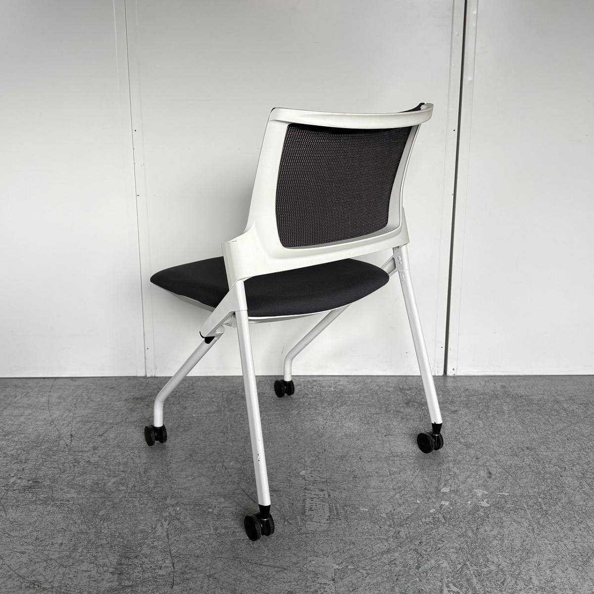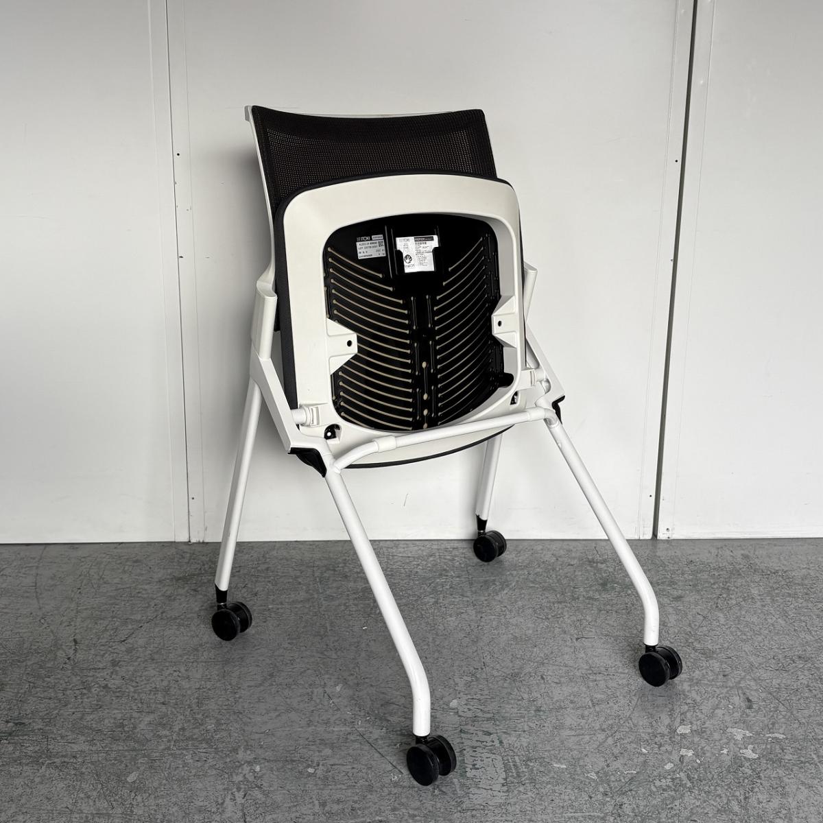【省スペース収納&キャスター付きの万能チェア!】■イトーキ(ITOKI)製 モノンシリーズ(Monon) ネスティングチェア ミーティングチェア キャスター付 ■背面メッシュ ■ブラック×ホワイトシェル- 東大阪店