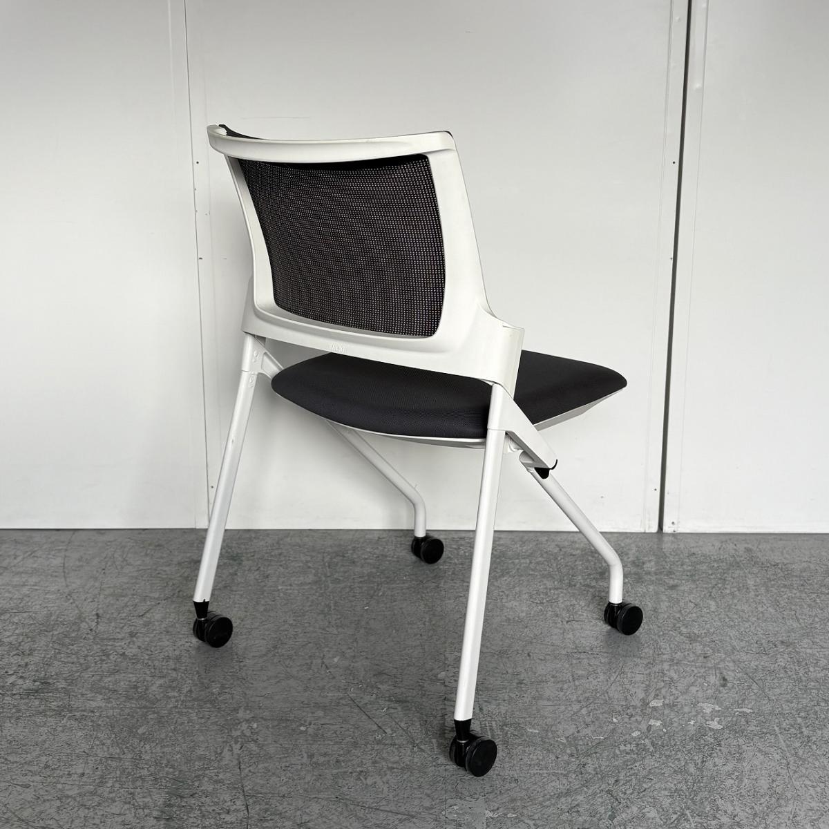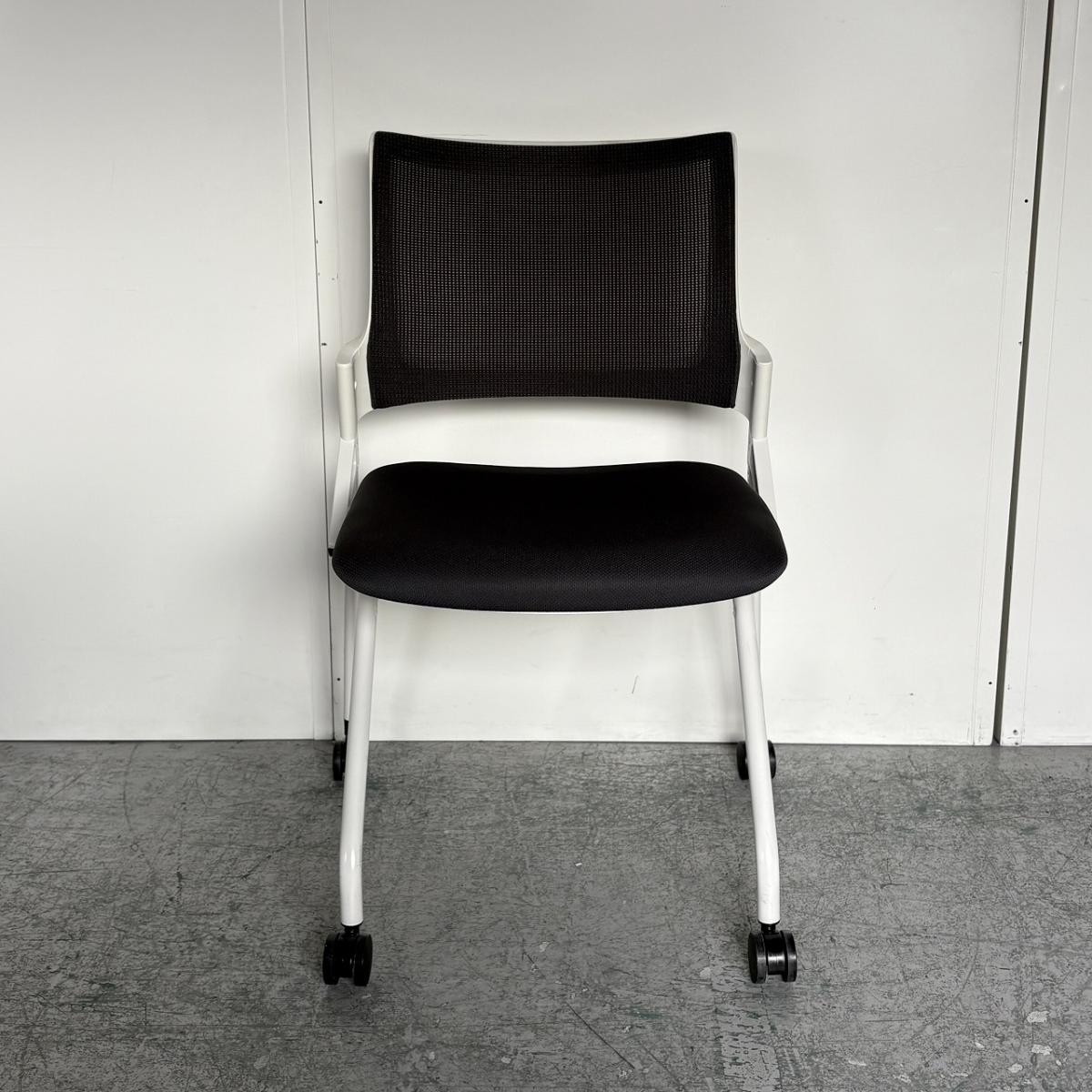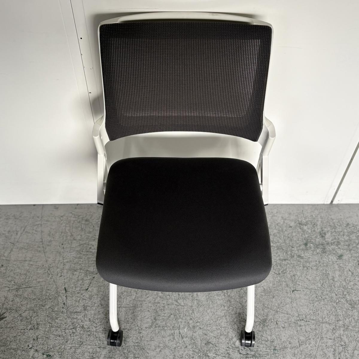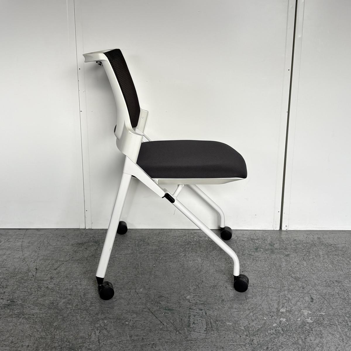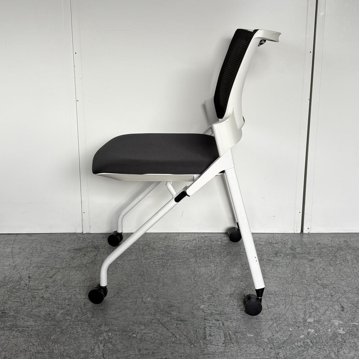 【省スペース収納&キャスター付きの万能チェア!】■イトーキ(ITOKI)製 モノンシリーズ(Monon) ネスティングチェア ミーティングチェア キャスター付 ■背面メッシュ ■ブラック×ホワイトシェル- 東大阪店