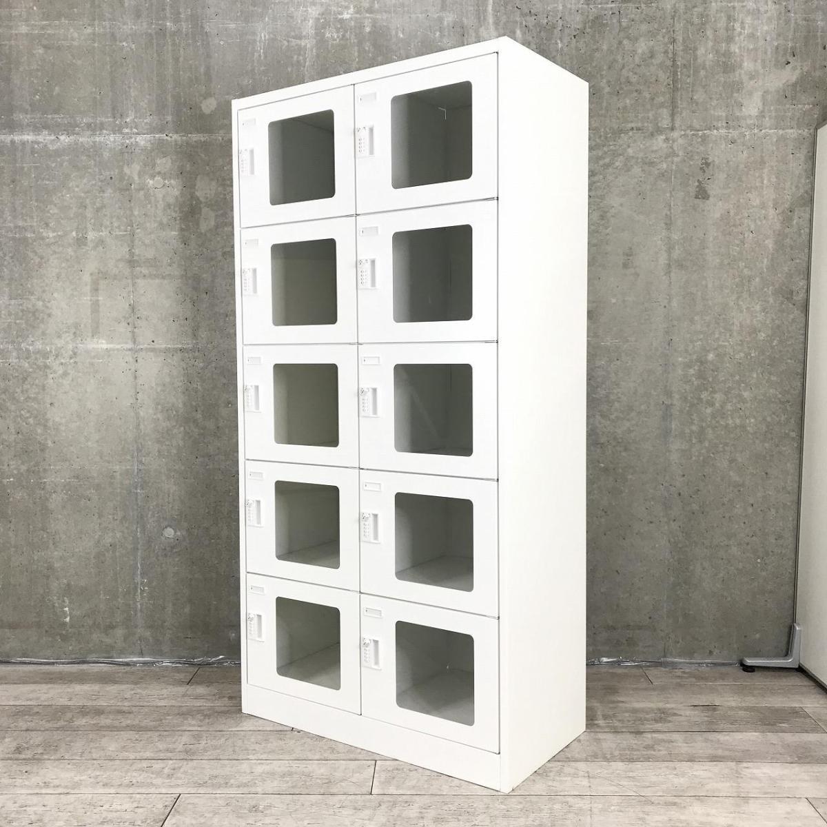 【入荷の少ないガラス戸タイプの10人用ロッカー!】■オカムラ(okamura)製 パーソナルロッカー10人用 ガラス窓付 ■ホワイト ■ダイヤル錠 ※非常用キーは別売りとなります【IB】- 在庫数