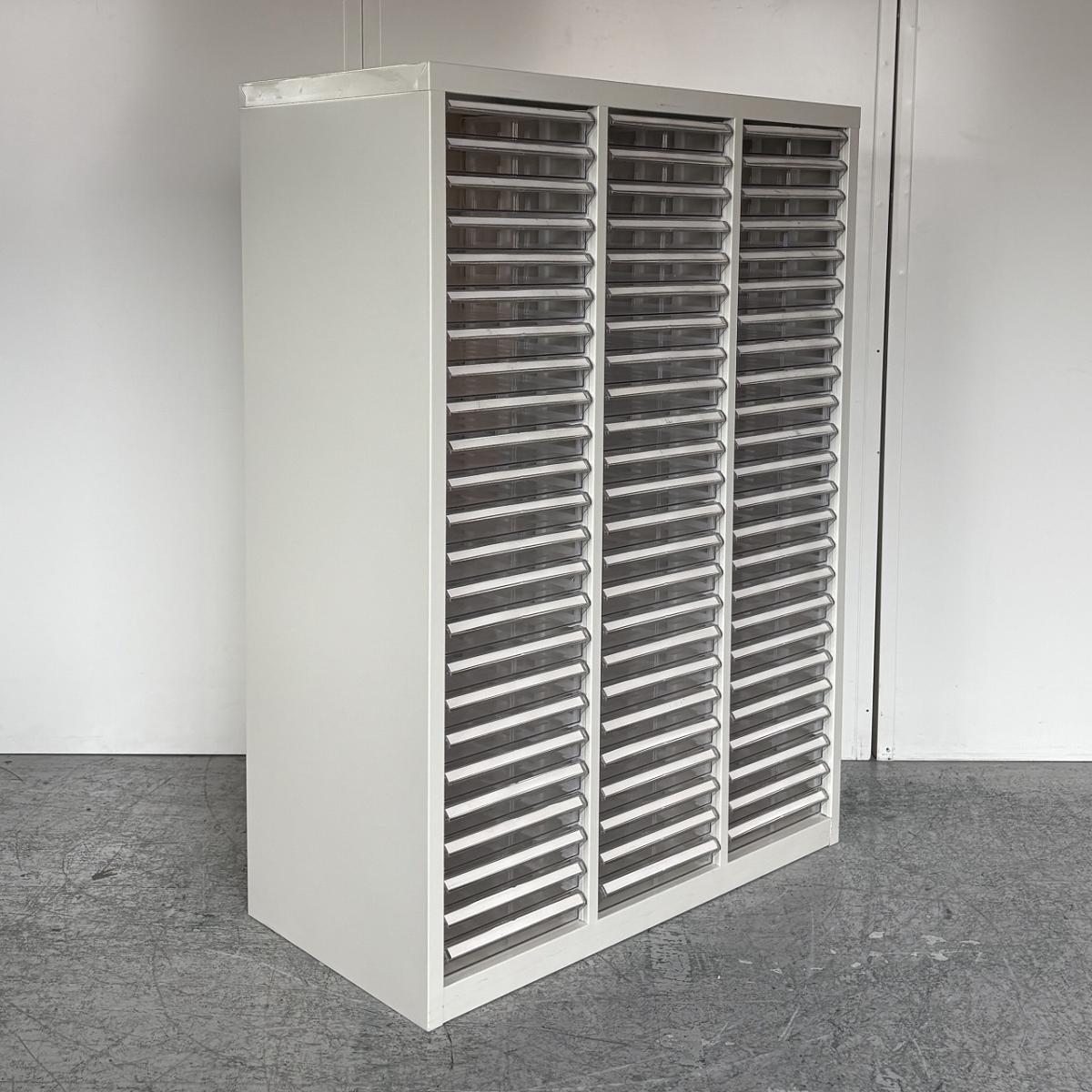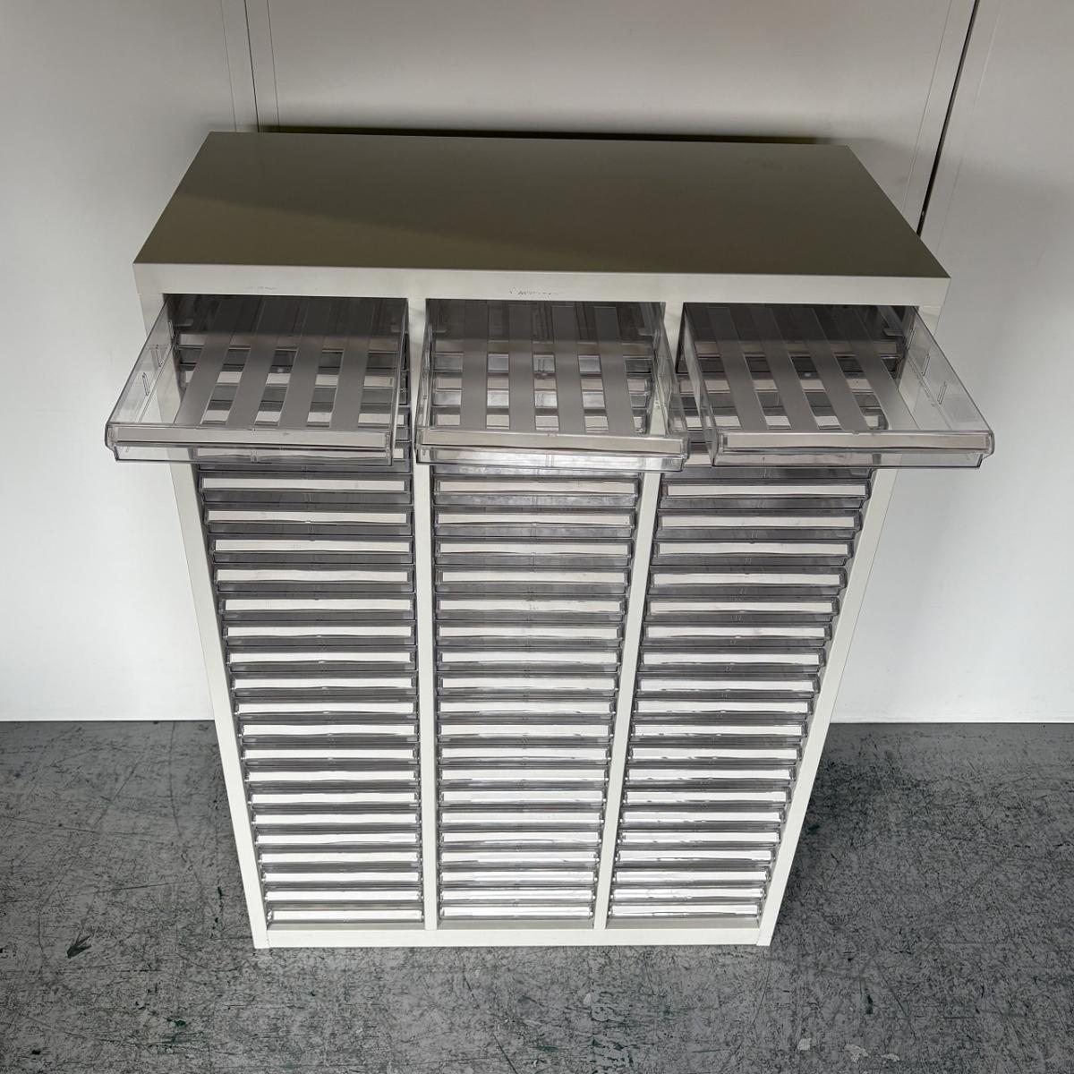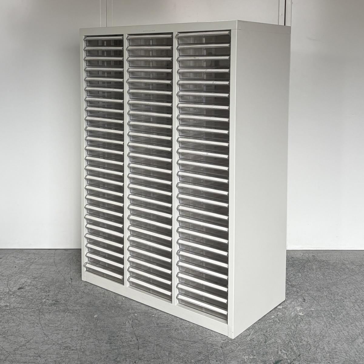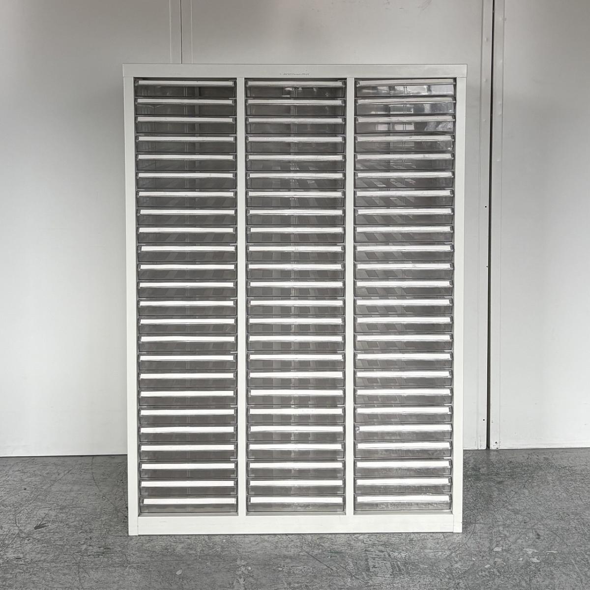 【3列×浅型24段】【書類・備品整理の必需品!】■クリスタルトレー ローキャビネット ■W800×D400×1120㎜ ■3列24段 浅型引き出し ■色:ニューグレー ■ベース無し- 東大阪店