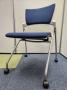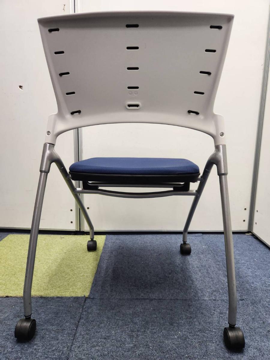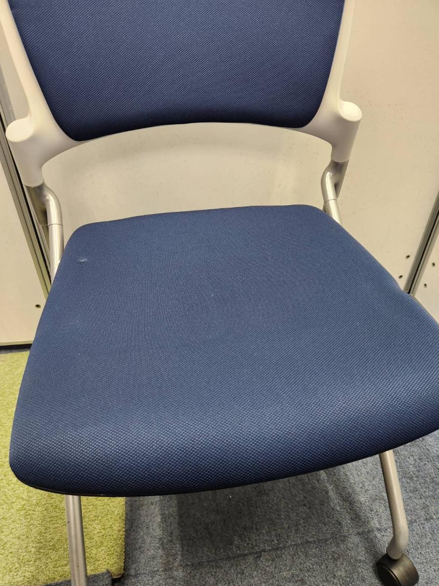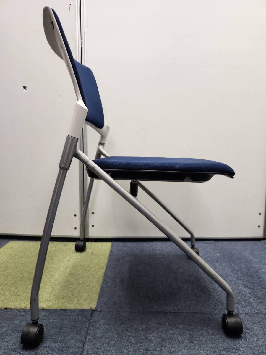 【セミナーや会議用にオススメ!平行ネスティングで省スペース化!】■イトーキ製 マノス ネスティングチェア ■背パッド付 キャスター付き ■ネイビーブルー オフィスバスターズ心斎橋店 ロット在庫