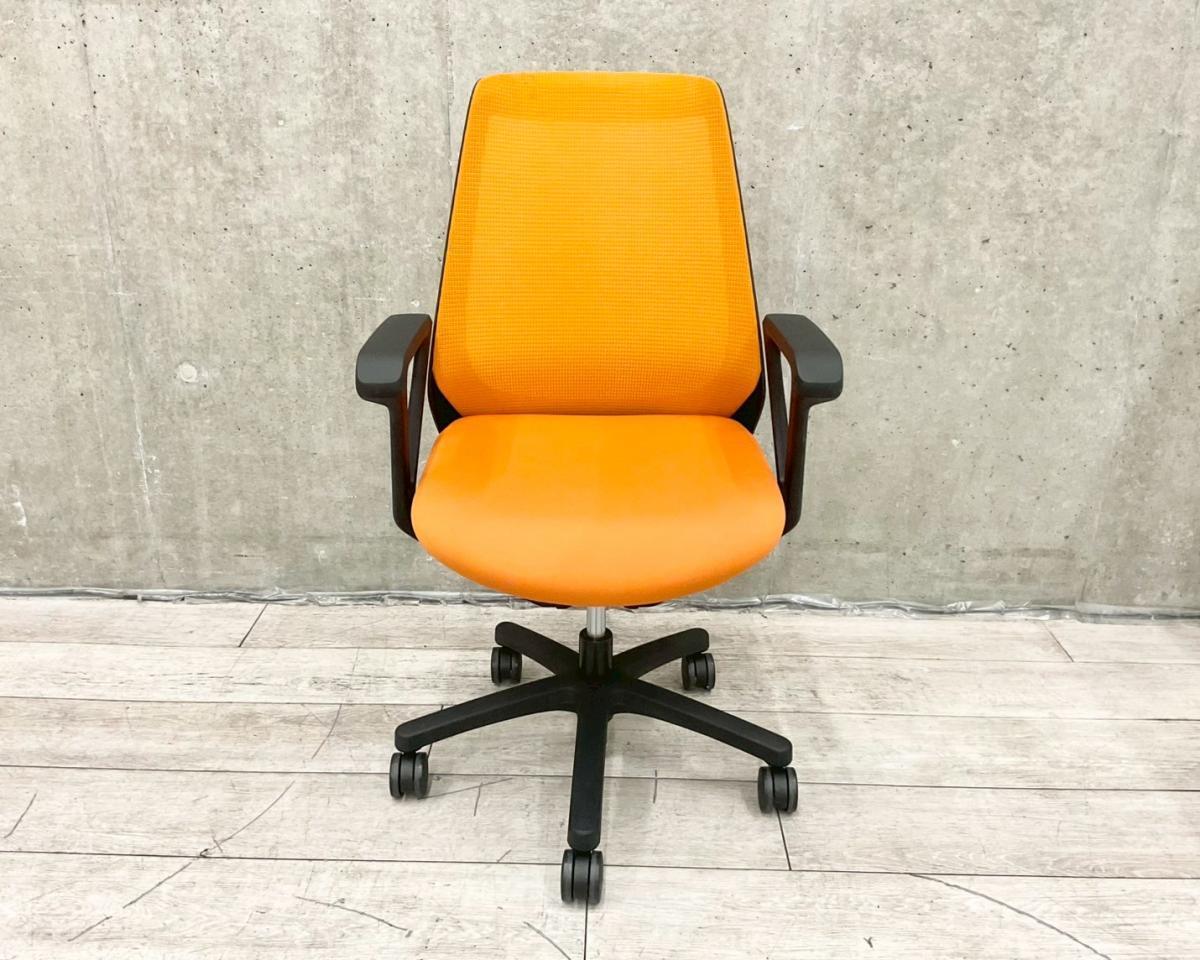 【1脚限定!2023年製の状態良好品!!人気のメッシュチェア】■イトーキ(ITOKI) ノナ(nona)チェア 背面メッシュ ■サークル肘 ■アンバーオレンジ 【デスクに納まりの良いコンパクト設計】- 品川・三田店