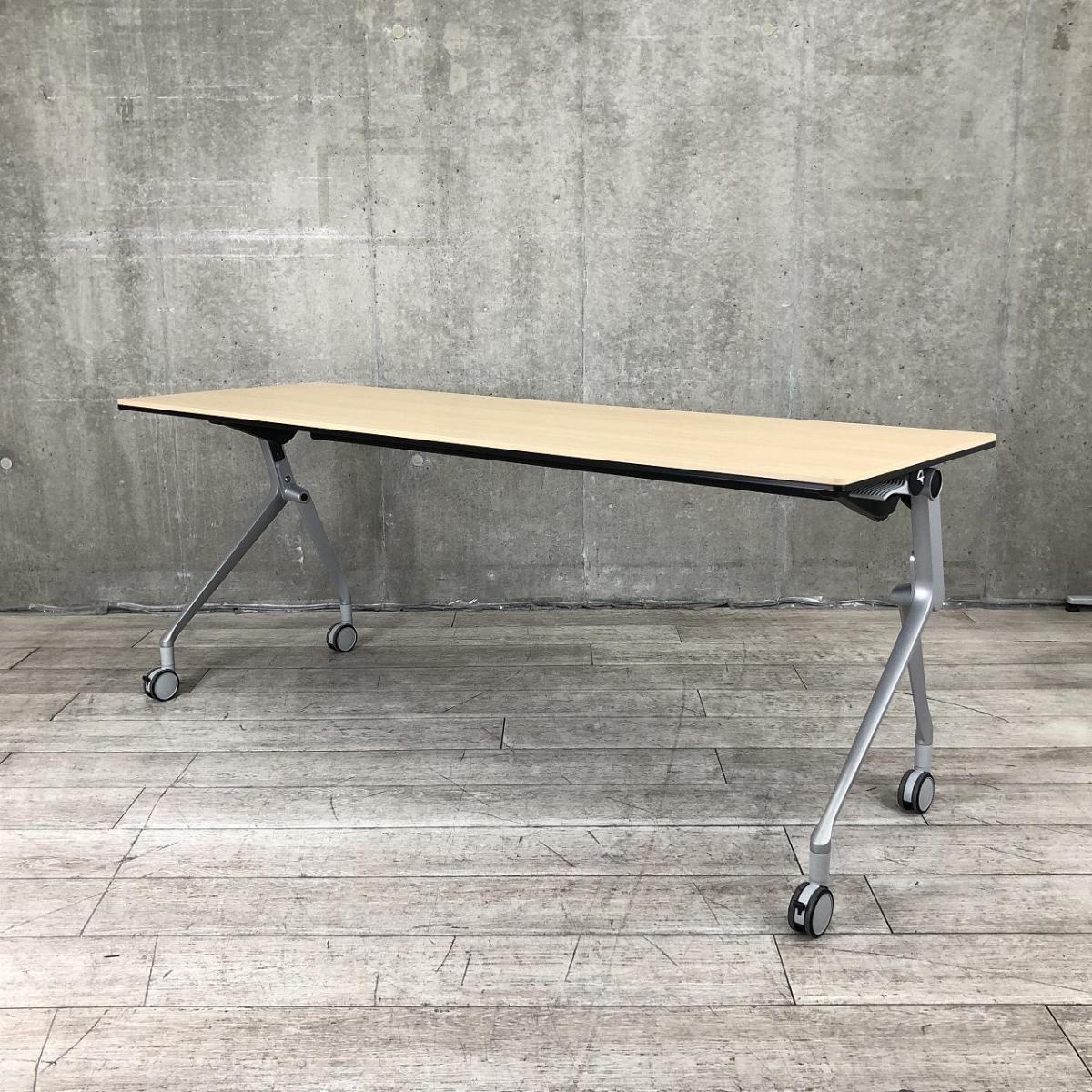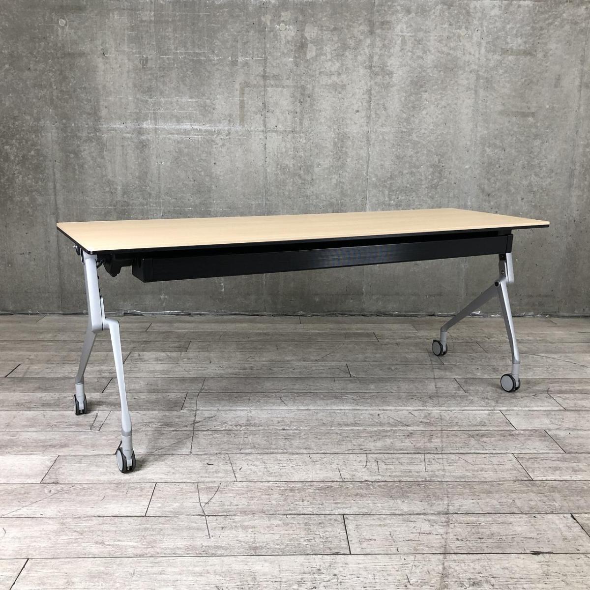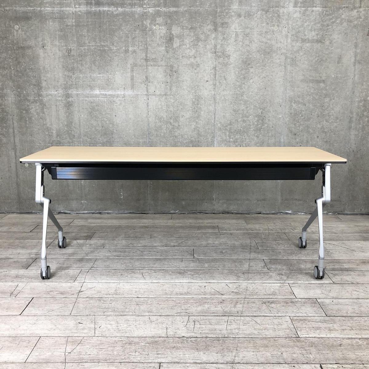 【幅1800サイズ】会議室やセミナーにおすすめです! 内田洋行/プラッテ/ナチュラル木目 キャスター付き 幕板付き テーブル 会議