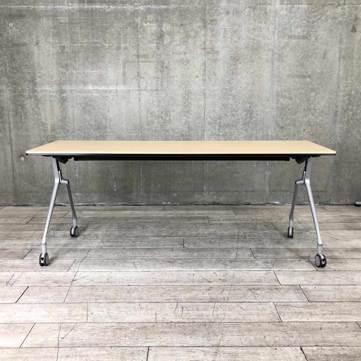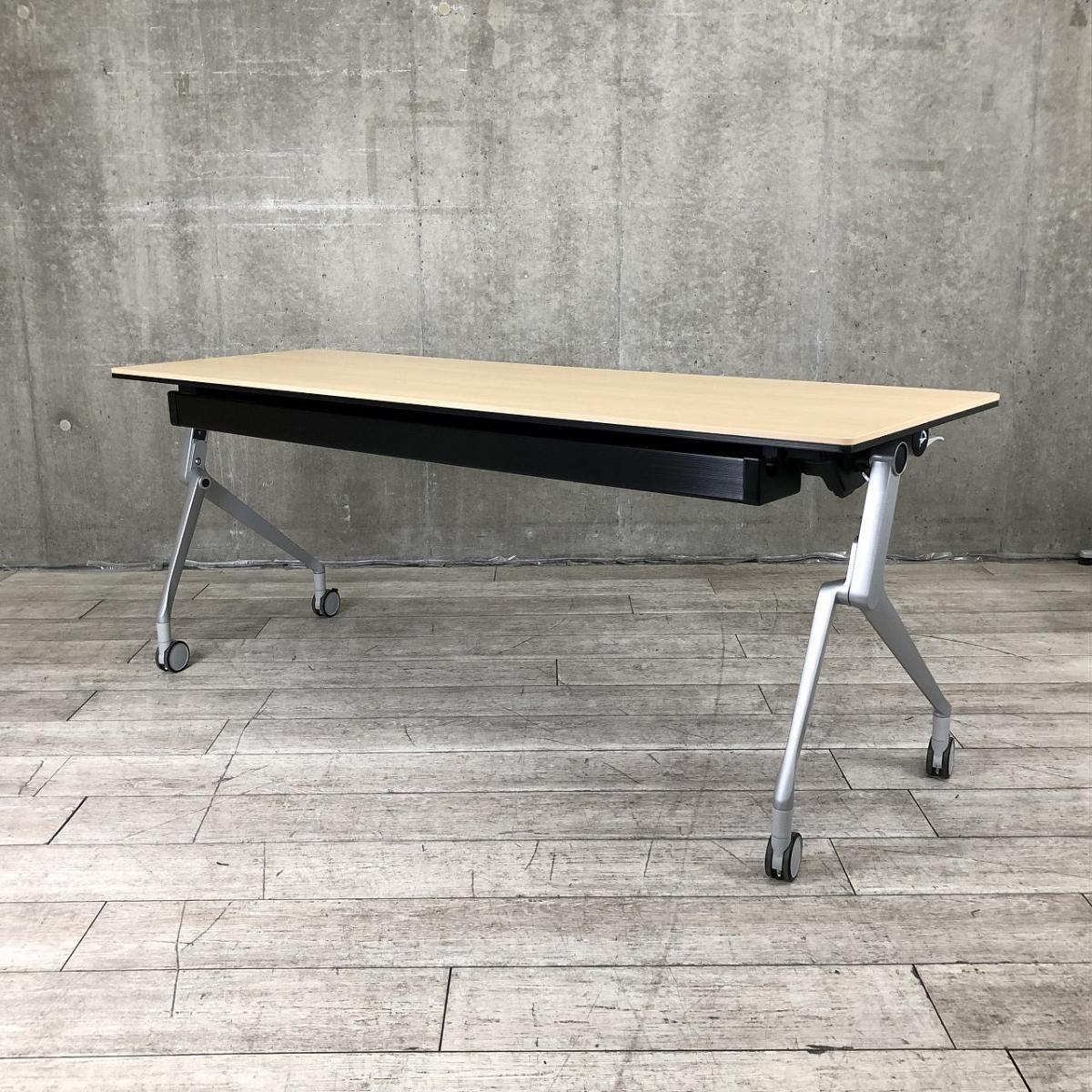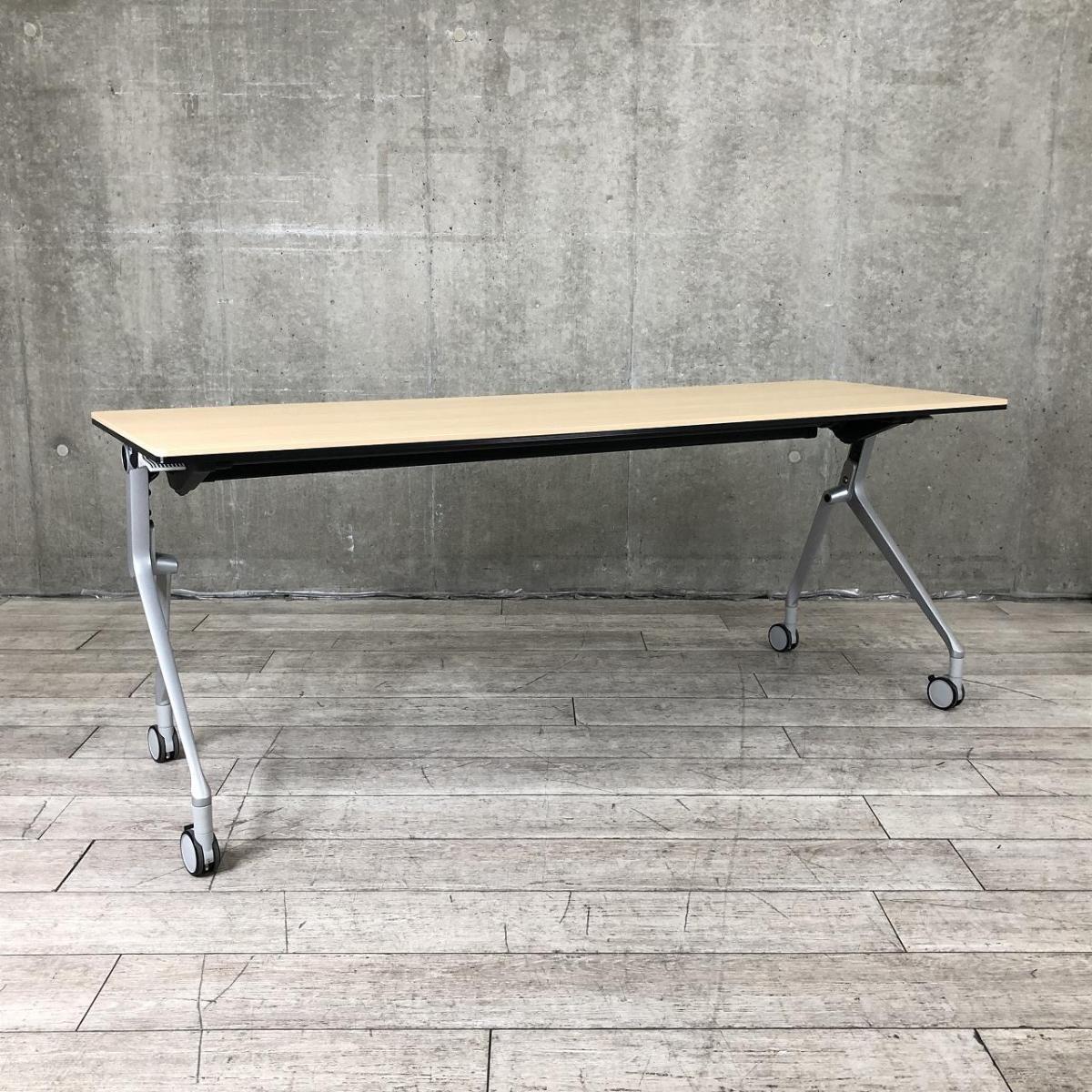 【幅1800サイズ】会議室やセミナーにおすすめです! 内田洋行/プラッテ/ナチュラル木目 キャスター付き 幕板付き テーブル 会議