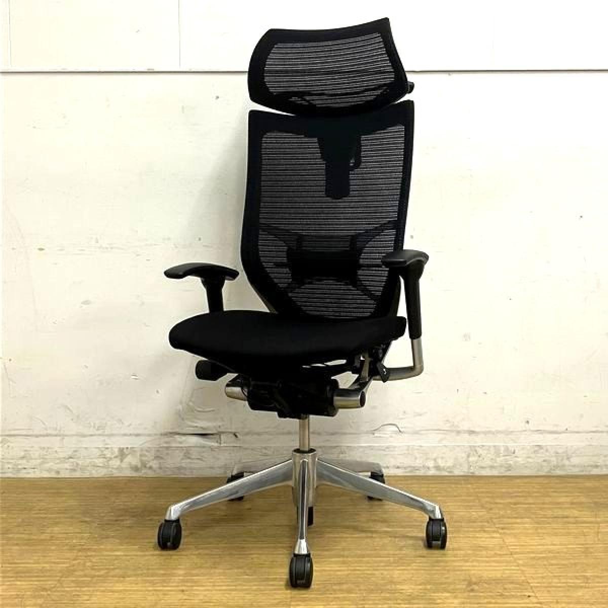 【オフィスの執務室、会議室におすすめ!】■オカムラ(okamura)製 バロン(Baron)チェア 肘付き ハイバック ■背・座面メッシュ ■可動肘 ■ヘッドレスト付き ■ブラック【硬めの座面が大人気!国産メッシュチェアの代表格!】