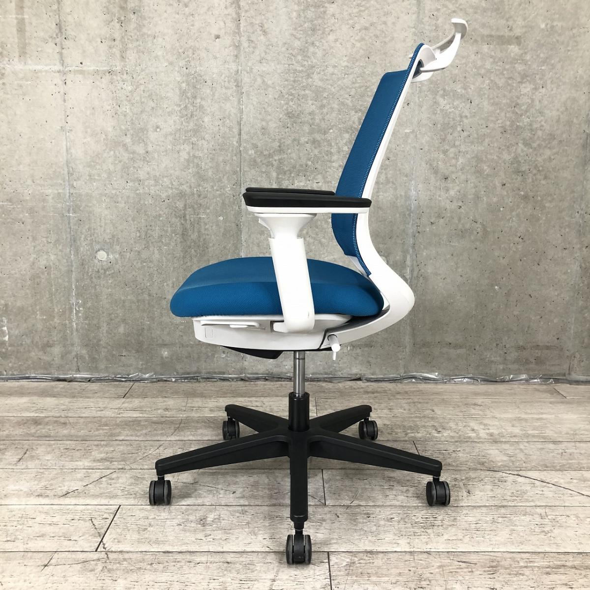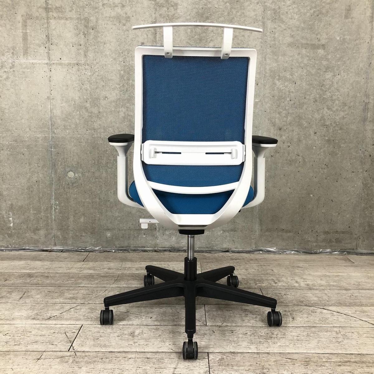 【すっきりと上質なデザイン!快適な座り心地を実現するオフィスチェア!】■コクヨ(KOKUYO)製 ミトラ2(Mitra2)チェア 肘付ローバック 背面メッシュ ■可動肘・ランバーサポート・ハンガー付 ■ブルー×ホワイトシェル