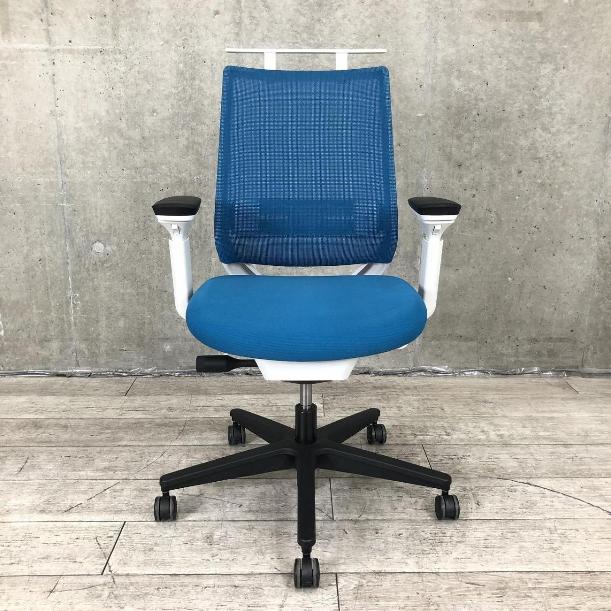【すっきりと上質なデザイン!快適な座り心地を実現するオフィスチェア!】■コクヨ(KOKUYO)製 ミトラ2(Mitra2)チェア 肘付ローバック 背面メッシュ ■可動肘・ランバーサポート・ハンガー付 ■ブルー×ホワイトシェル- 千葉店