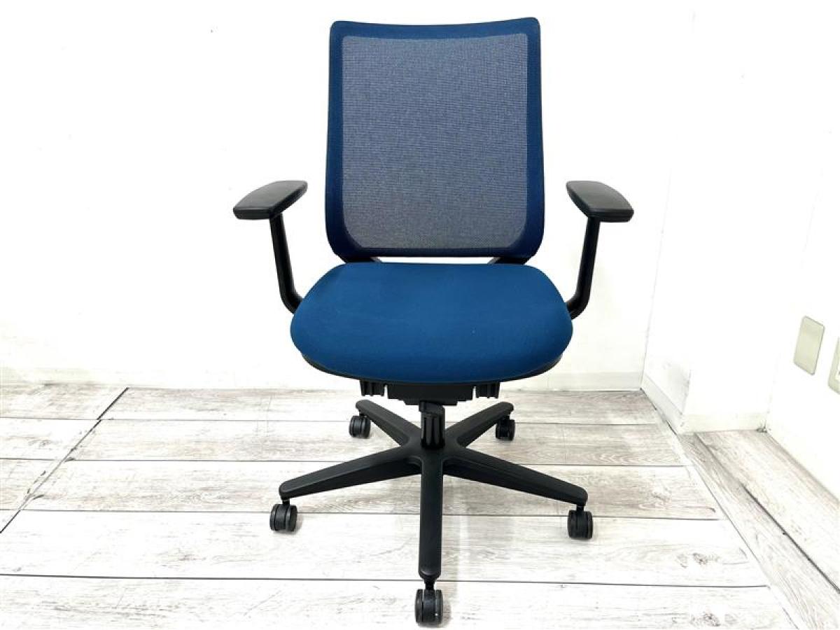 【在庫入替セール品】【定価9万円】【大人気シンプルなブラックチェア!上質な座り心地!】■コクヨ製 ミトラシリーズ (Mitra) 肘付ローバック ■ブルー ■可動肘 ■背面メッシュ