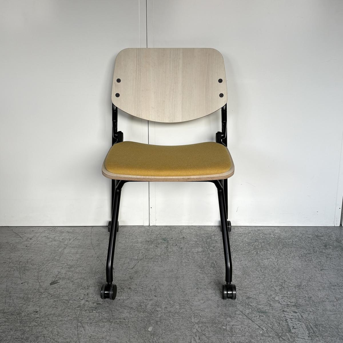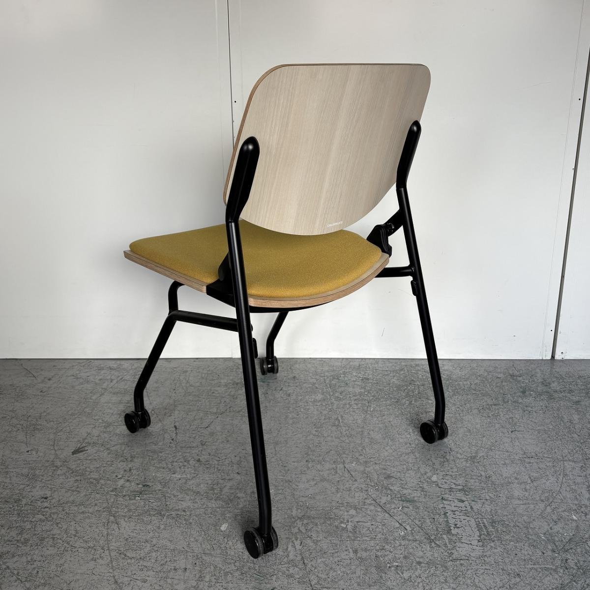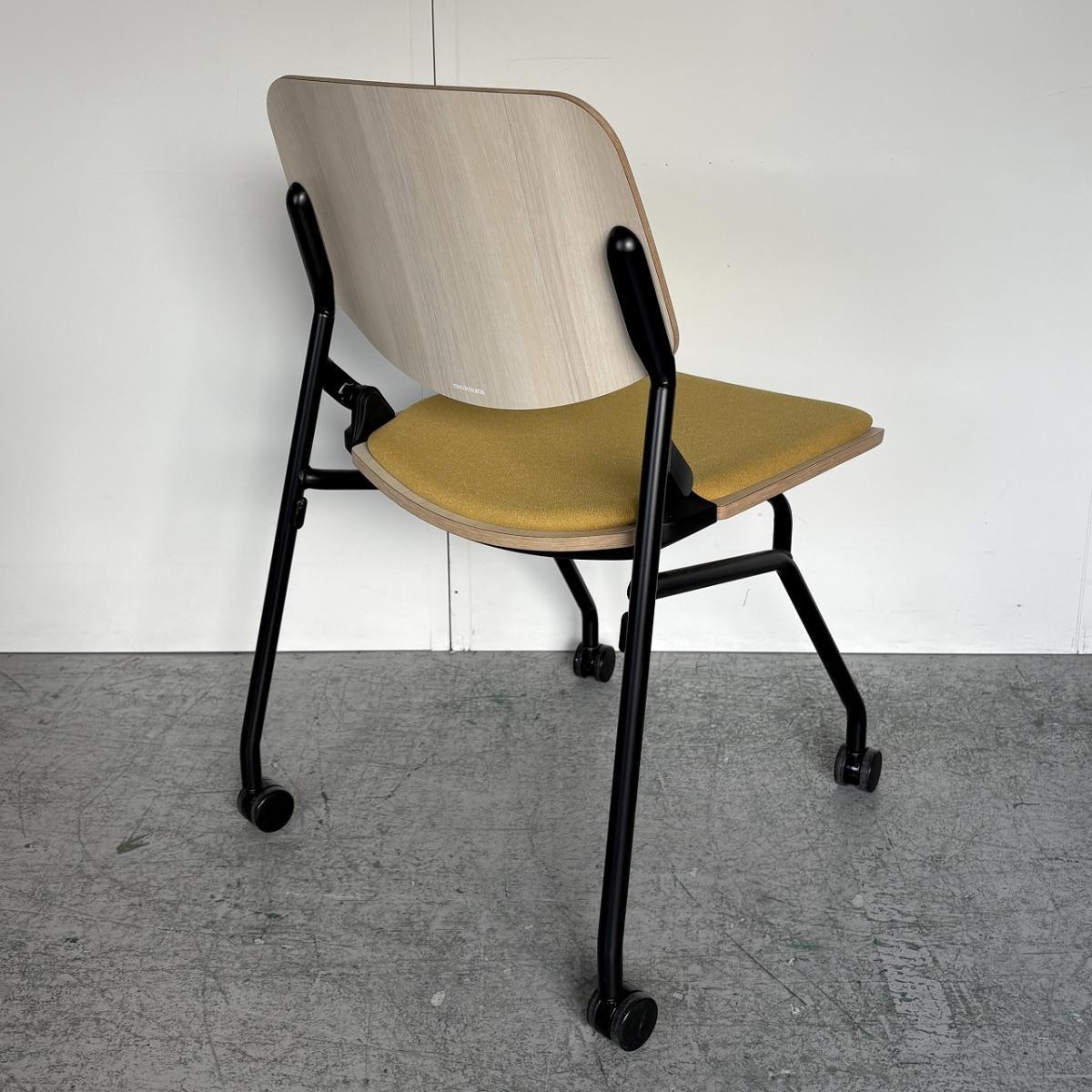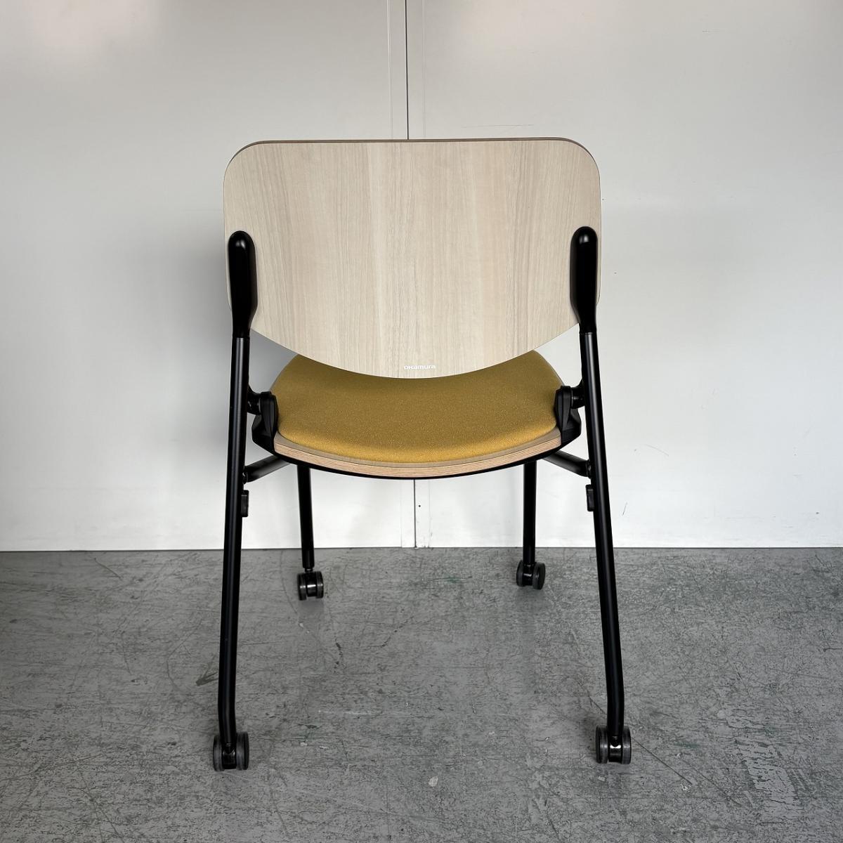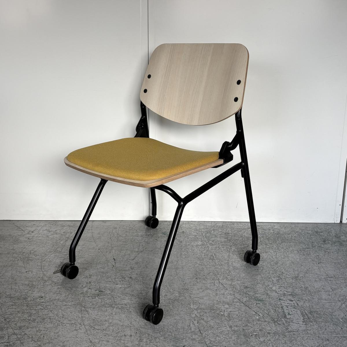 【カジュアルなミーティングスタイルに!キャスター付きで楽々移動!】■オカムラ(okamura) ライブス(Lives) ネスティングチェア ■シェル:プライズウッドライト 座面パッド:イエロー ■キャスター付き- 大阪・堺店