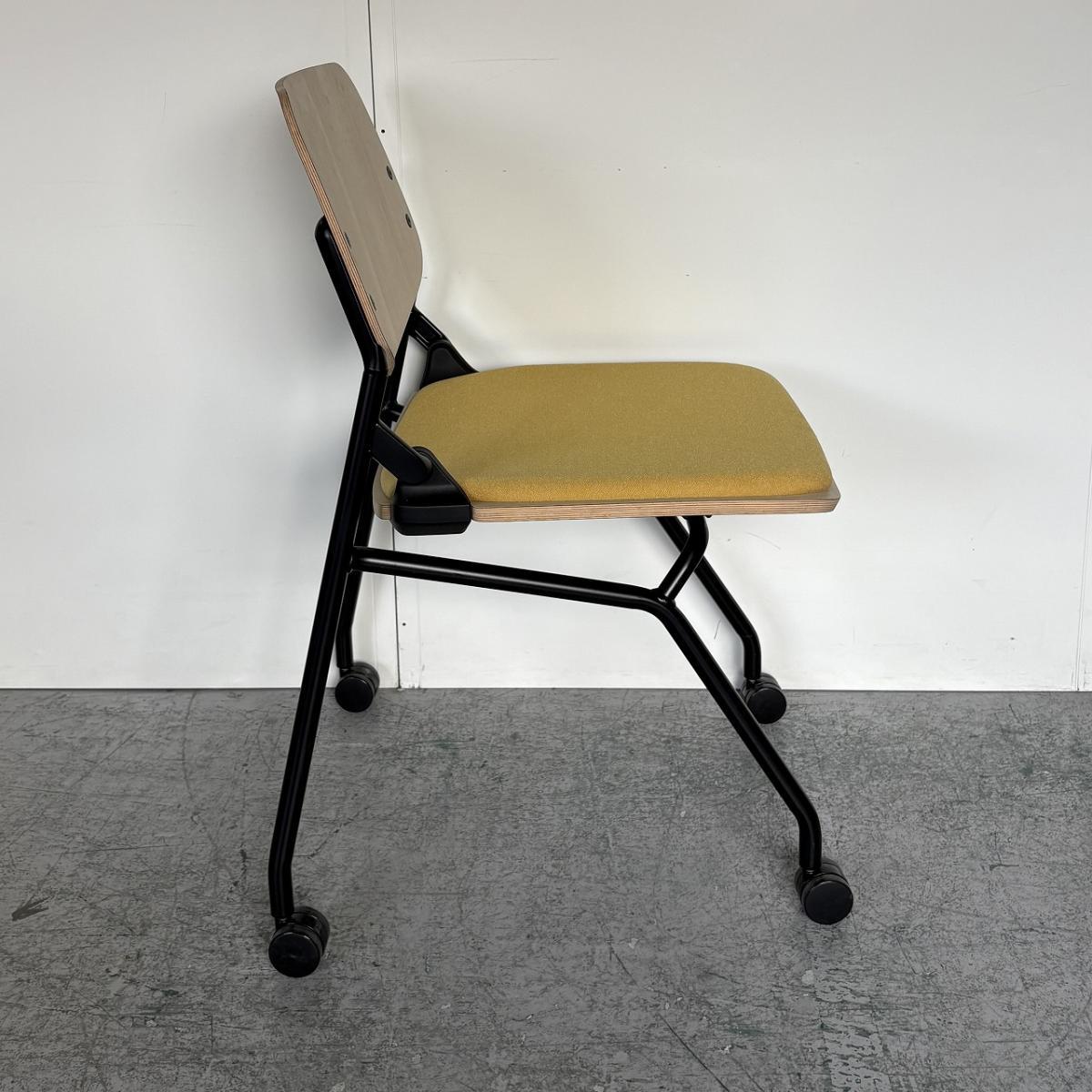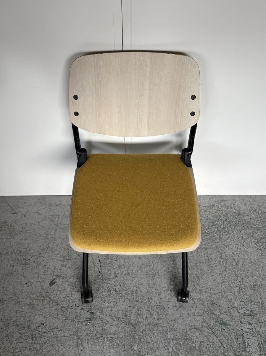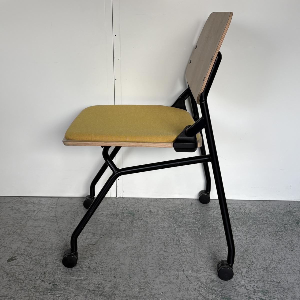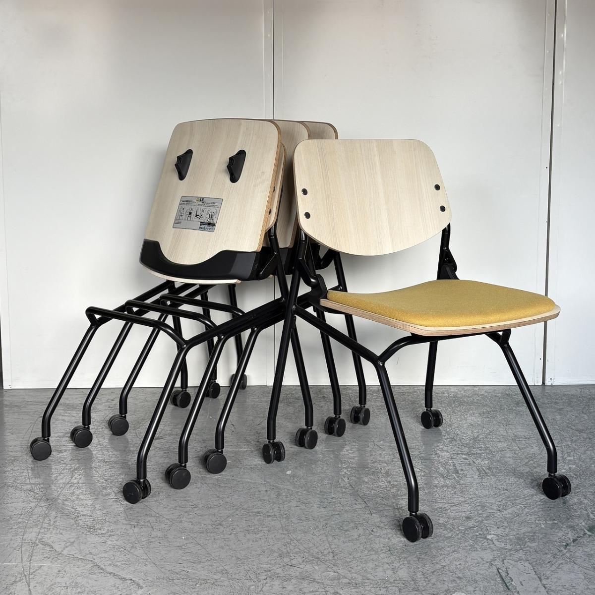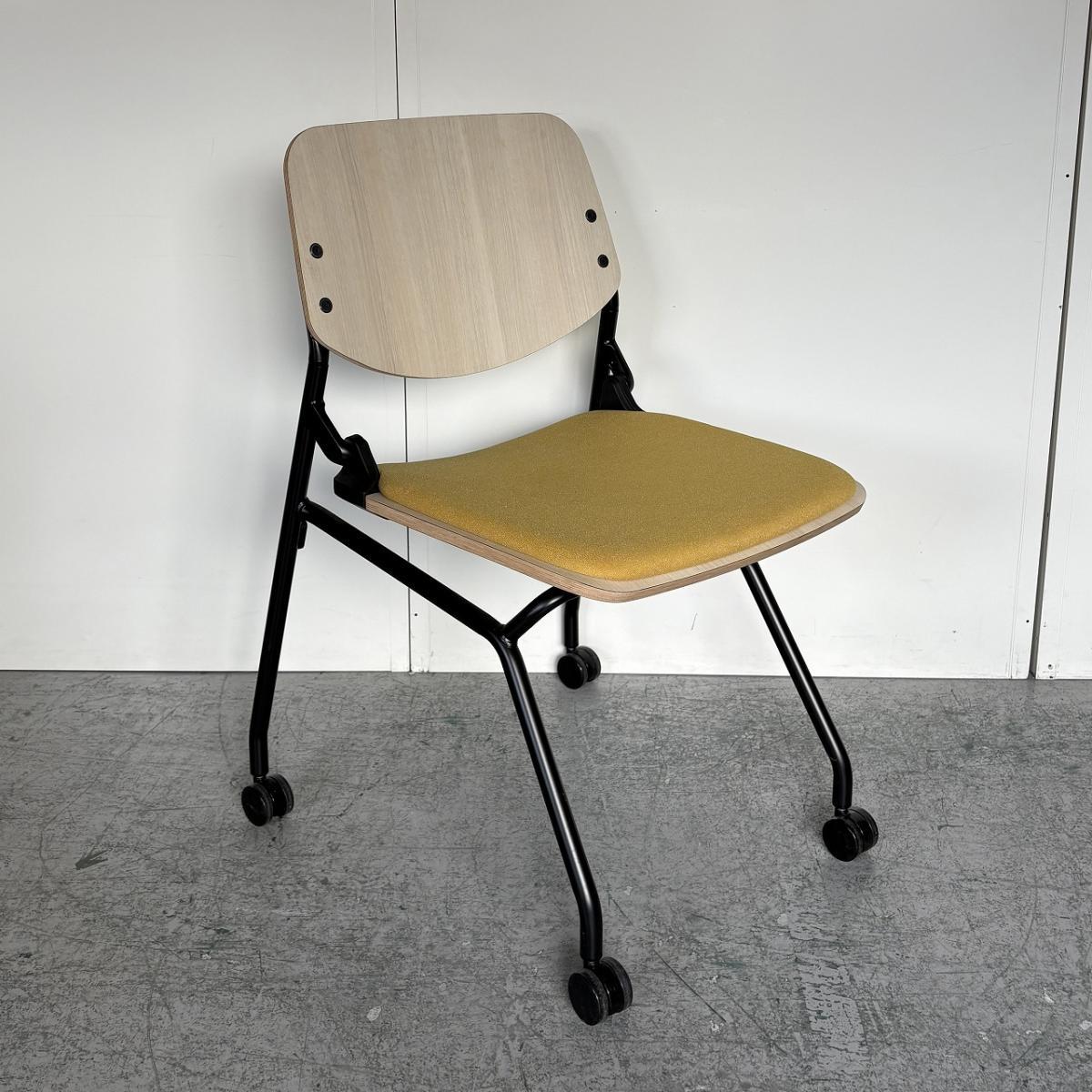 【カジュアルなミーティングスタイルに!キャスター付きで楽々移動!】■オカムラ(okamura) ライブス(Lives) ネスティングチェア ■シェル:プライズウッドライト 座面パッド:イエロー ■キャスター付き- 大阪・堺店
