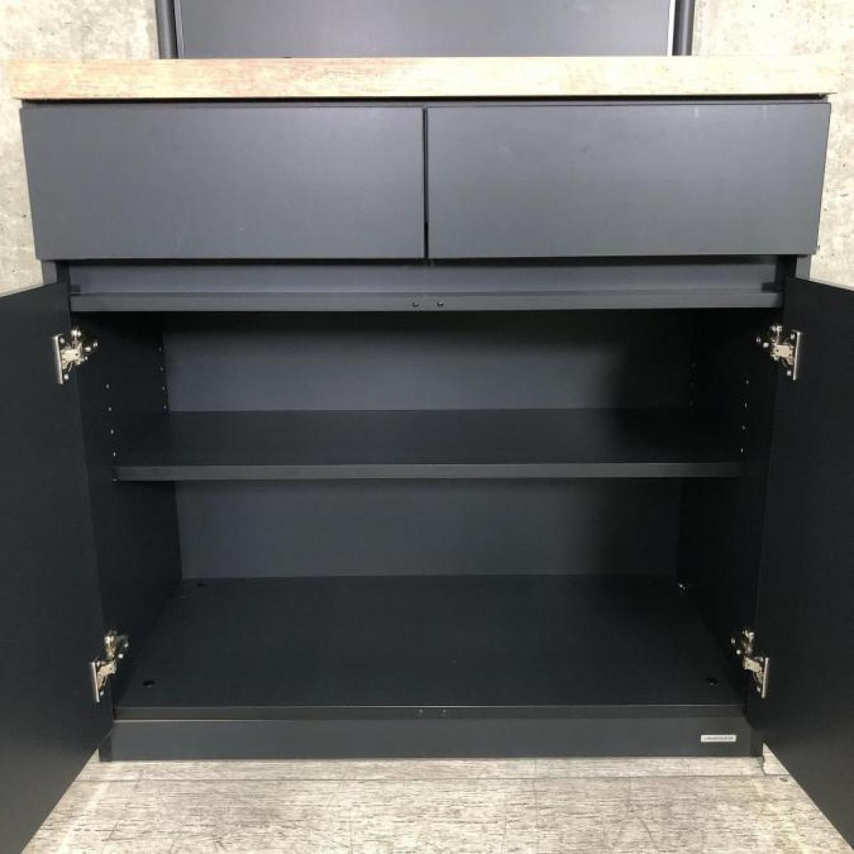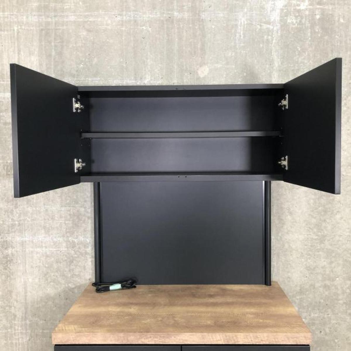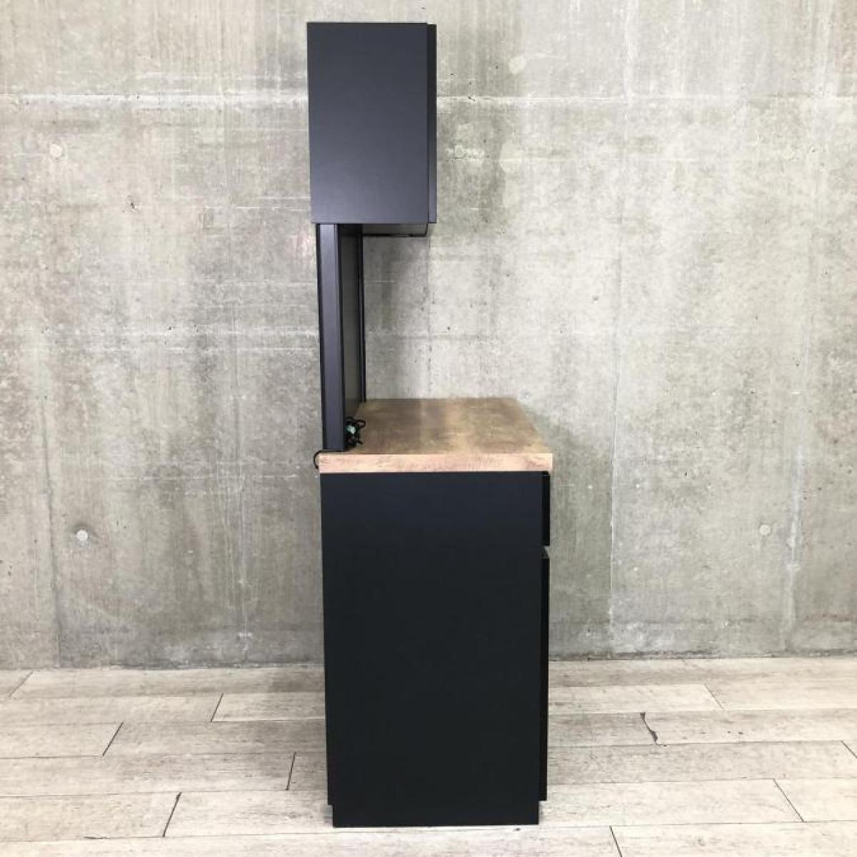 【シックなキッチンキャビネット!給湯室にオススメ】■オカムラ(okamura) アルトピアッツァシリーズ キッチンキャビネット ■W900×D520×H1790㎜ ■コンセント付 ■本体:ブラック 天板:木目ナチュラル【K9】- 大阪・堺店