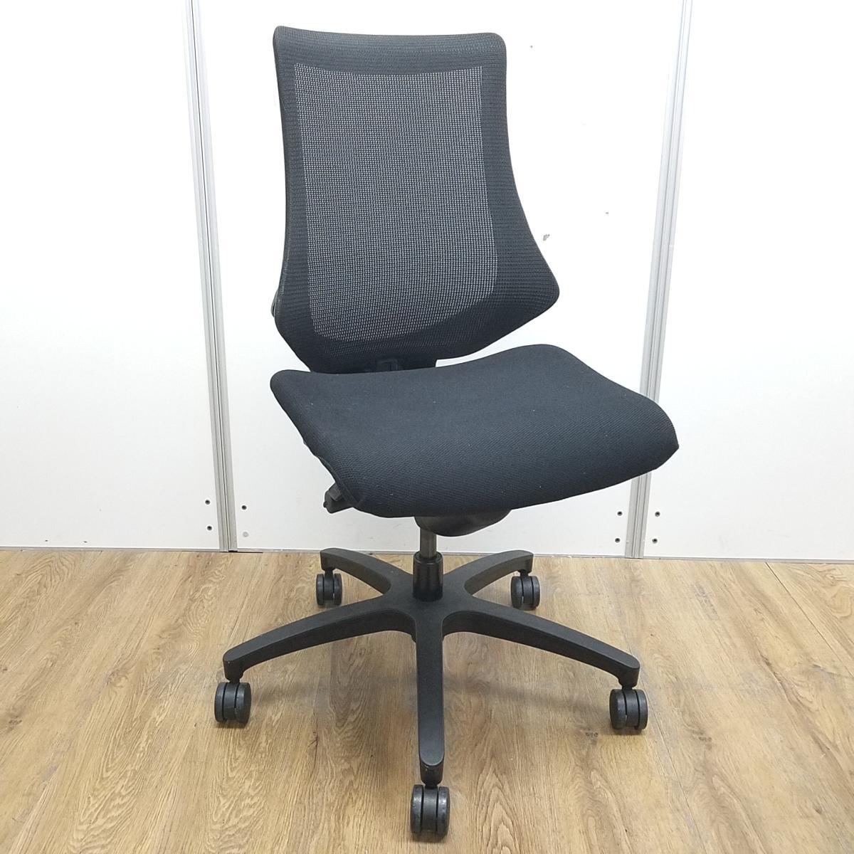 イトーキ製 エフ(f) ブラック ブラックグレーム ハイバック メッシュ仕様 姿勢の変化にフレキシブルに対応! スタイリッシュなデザインのメッシュチェア! 肘無しハイバックチェア!!- 京都東寺店