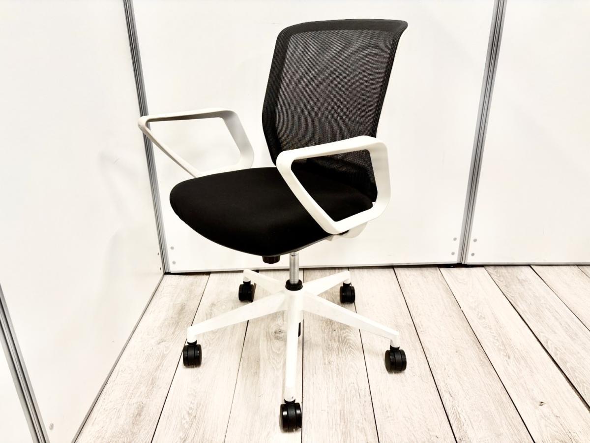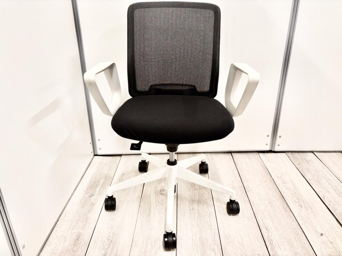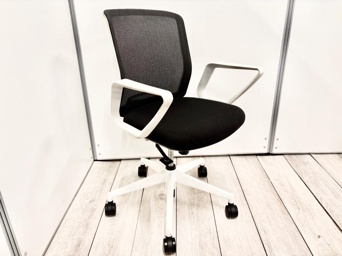 【1脚限定の為、お安く!】【背面メッシュのローコストチェア!】■ウチダ(UCHIDA)製 カリッサ(Carissa)チェア 肘付き ローバック 背面メッシュ ■サークル肘 ■ブラック×ホワイトシェル