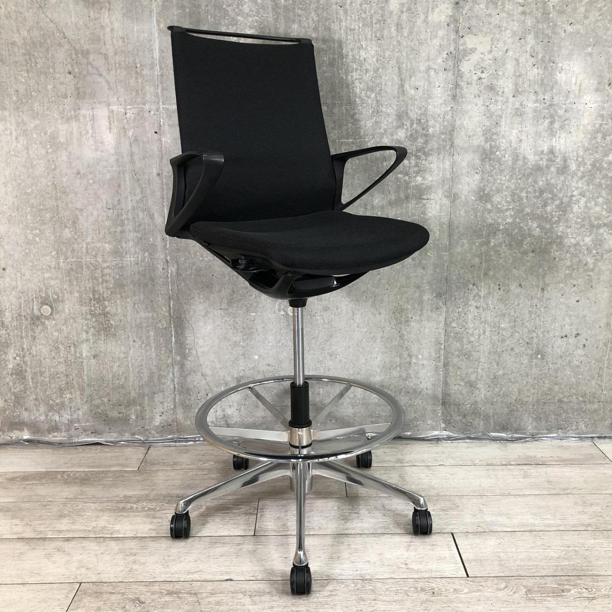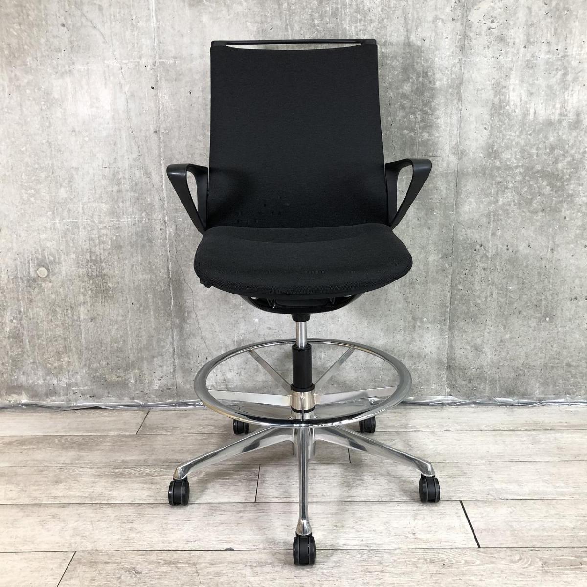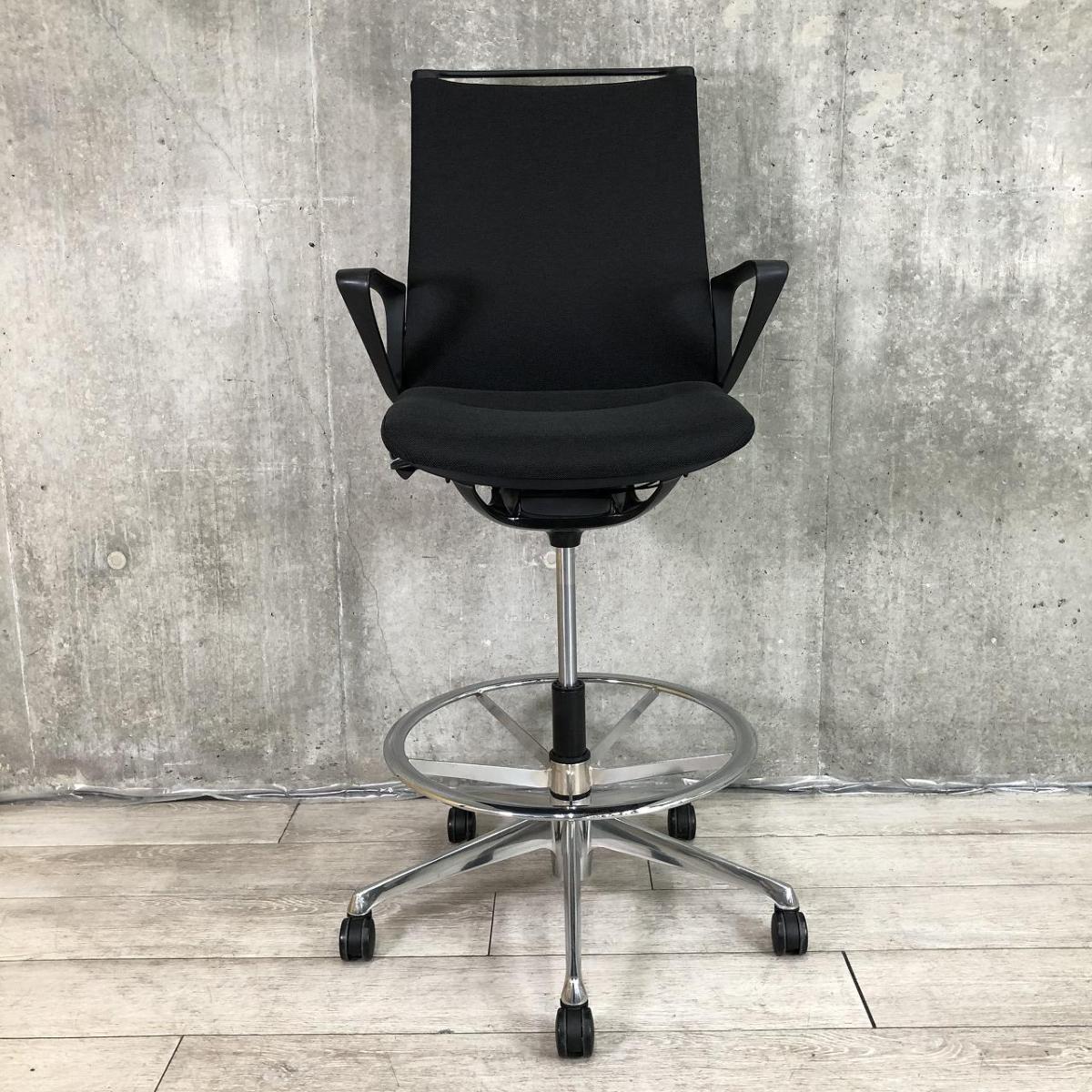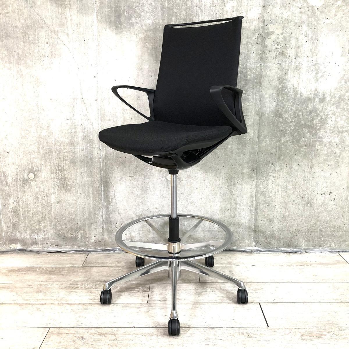 【スタイリッシュなデザインでモダンな空間を演出!】■オカムラ モードチェア デザインアーム付 ※ハイチェア仕様 足掛けリング付 ■ハイテーブル/カウンター用/作業用/製図用【okamura mode】- 川崎店