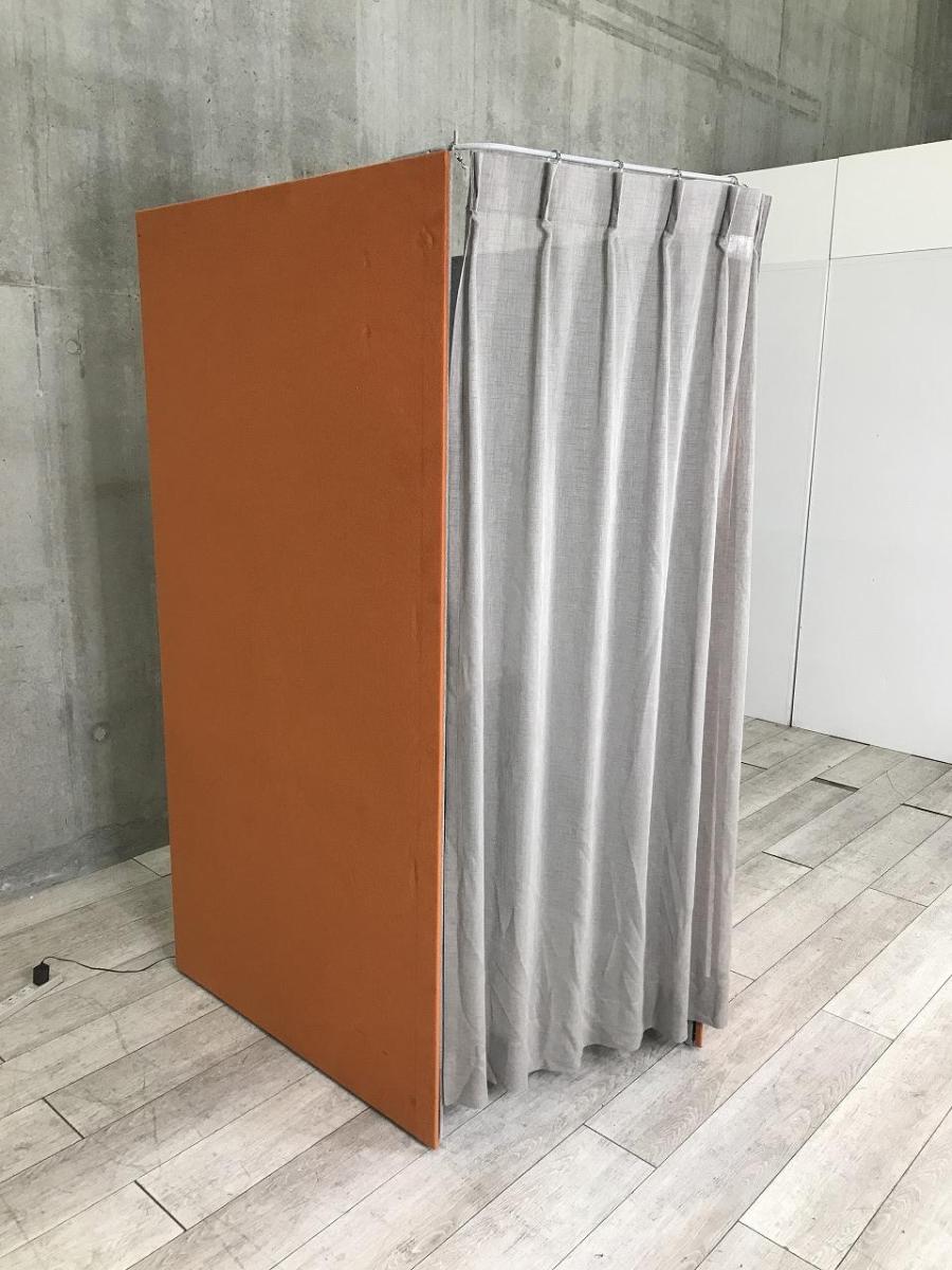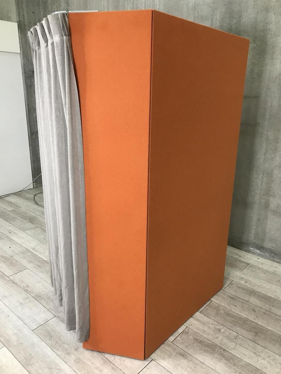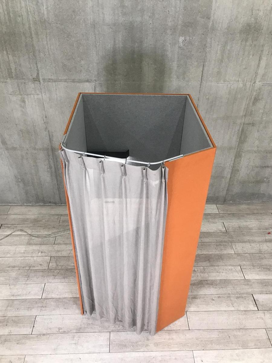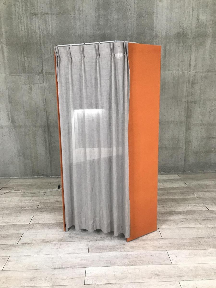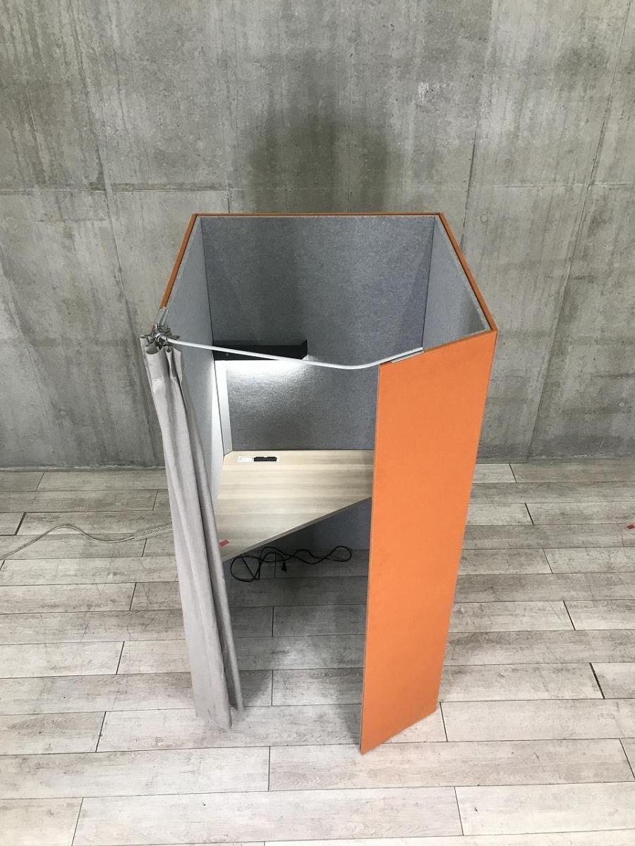 【ワーカーの集中を高めるミニマムなワークブース!】■オカムラ(okamura)製 ドレープシリーズ (テトラタイプ) 集中ワークブース ソロワークブース (W1000/D1200/H1930) ■オレンジ×ライトグレー ■テーブル・照明・カーテン付き 【ABW商材】【関東倉庫在庫品】【弊社使用欄:A01033351】- 全店共通商品