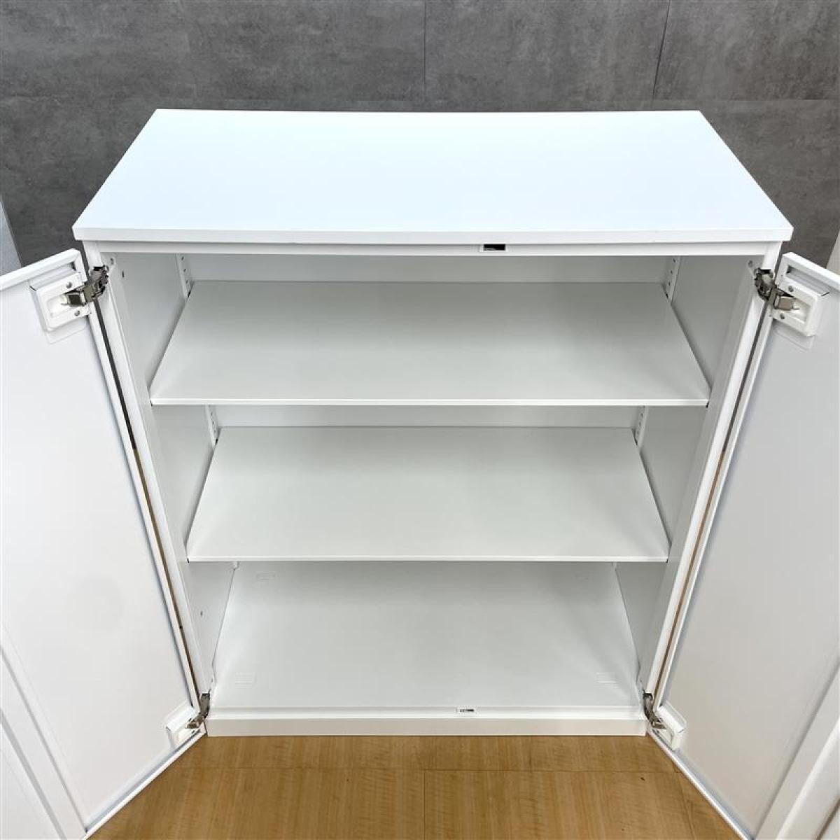 【スライド引き戸だから開閉スペースに困らない!】■コクヨ(KOKUYO)製 エディア(EDIA)シリーズ 2枚引き違い書庫 ローキャビネット シリンダー錠 天板付き ベース付き ホワイト シリンダー錠 収納 中古家具 格安 福岡 オフィス家具 九州最大級《オフィスバスターズ福岡博多店は、福岡を拠点として、日本全国へ中古オフィス用品・オフィス家具を提供しております》